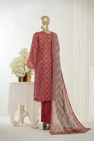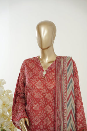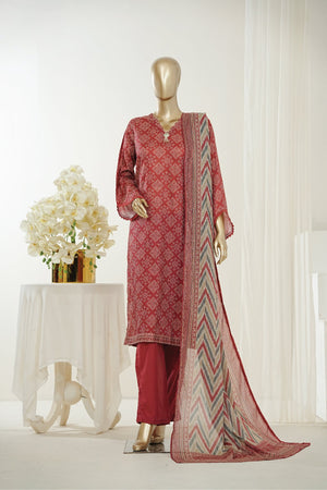 Bin Saeed Stitched 3 Piece Exclusive Printed Lawn Vol-10 Suit-LSM-2950-MAROON