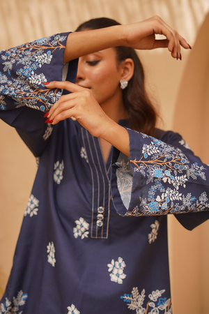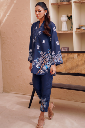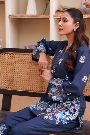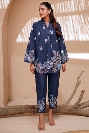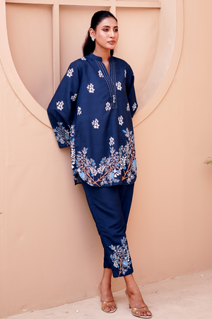 Nairah Stitched Co Ords Summer Suit-Midnight Blue