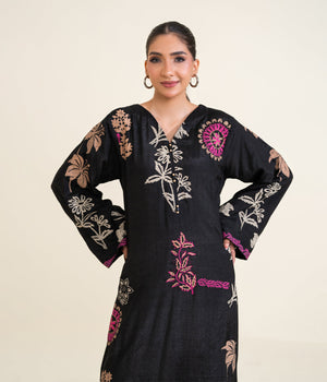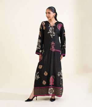 Sinopia Stitched 1 Piece Block Print Kaftan-SSBP26-002-Black