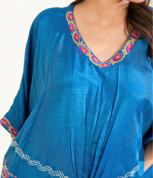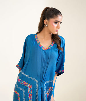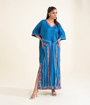 Sinopia Stitched 1 Piece Block Print Kaftan-SSBP26-001-Blue
