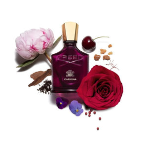 Carmina by Creed is a Floral Woody Musk fragrance for women. This is a new fragrance. Carmina was launched in 2023. Top notes are Black Cherry, Saffron and Pink Pepper; middle notes are May Rose, Peony, Violet and Cashmere Wood; base notes are Musk, Ambroxan, Myrhh and Frankincense.