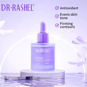 The grape seed and orchid facial oil works instantly to restore your natural glow, replenish lost nutrients fight oxidative damage and prevent water loss from your skin. The strong antioxidants in grape seeds increase collagen production, reducing the appearance of fine lines and improving elasticity for healthy youthful looking skin. Use For : Face Oil Feature : Clarifies - Antioxidants - Restores Radiance - Dullness - Uneven Texture - Loss of Firmness - Elasticity - Dryness Skin Type : Suitable for all skin types Bring out your skin's natural radiance with Dr. Rashel's Orchid Grape Seed Face Oil. The combination of grape seed antioxidants and orchid nutrients instantly replenishes and nourishes your skin. With regular use, this face oil can improve elasticity and fight signs of aging, leaving you with a healthy and youthful glow. Suitable for all skin types, this product is a must-have for anyone trying to clarify their skin and restore its natural beauty. Dr. Rashel Orchid & Grape Seed Repairing Face Oil is a luxurious blend formulated to nourish and repair the skin. Enriched with orchid extract and grape seed oil, this face oil deeply hydrates, soothes, and rejuvenates the skin, leaving it soft, smooth, and radiant. Orchid extract is known for its moisturizing and anti-aging properties, helping to improve skin elasticity and firmness while reducing the appearance of fine lines and wrinkles. Grape seed oil is rich in antioxidants and vitamins, providing protection against environmental damage and promoting skin repair. This lightweight and non-greasy formula absorbs quickly into the skin, making it suitable for all skin types. Incorporate this face oil into your daily skincare routine to reveal a healthier, more youthful-looking complexion. Revitalize your skin with Dr. Rashel's Orchid Grape Seed Face Oil. Infused with grape seed antioxidants and orchid nutrients, this luxurious oil replenishes lost nutrients, fights oxidative damage, and prevents water loss for a youthful, radiant glow. With regular use, this face oil can improve elasticity, reduce fine lines, and promote collagen production. Suitable for all skin types, it clarifies, restores radiance, and addresses issues like dullness, uneven texture, and dryness. Make this face oil a staple in your skincare routine to reveal a healthier and more youthful-looking complexion.