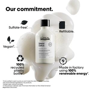 - Metal Detox Technology: Our Metal Detox Anti-Metal Sulfate-Free Shampoo is specially designed to rid your hair of accumulated metal particles that can affect its vibrancy and health.