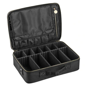 The Artist Travel Case is the perfect on-the-go cosmetic bag. This travel case has several compartments, makeup brush slots, and a zipper pouch for all your necessities! There is enough space for cosmetics and accessories to keep your makeup tools organized.