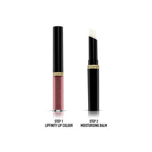 Max Factor Lipfinity Lip Colour is the original, reinvented longwear lip product, offering 2 steps to lastingly luscious lips. It is the perfect way to make a lasting impression. Lipfinity Lip Colour - hot, must-have shades that last all day. Make a statement with rich colour that stays put for up to 24 hours. Formula A lip gloss and a lipstick balm give a multi-dimensional colour and shine that last up to 24 hours. Now with a new applicator for a true, bold colour that stays put all day. Make-up Artist Tips 2 Steps: 1) Apply Lipfinity Lip Colour to clean, dry lips. First, line your lips using the Lipfinity applicator. Then turn the applicator over and fill in your lips. Wait for one minute for the colour to dry, and then 2) apply the moisturising balm which gives a smooth finish with luscious shine. Reapply the balm top coat regularly throughout the day.