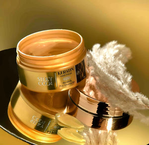 Silky Cool Keratin Hair Mask with Black seed oil, coconut oil, argan oil and keratin, nourishes hair, reduces hair breakage and appearance of split ends, and rejuvenates chemically damaged, dry hair.
