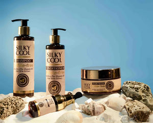 Silky Cool Sulfate Free Conditioner 250ml infused with keratin, aloe vera extracts and pro-vitamin B5, nourishes hair, maintains moisture balance, adds shine, and preserves chemically treated hair.