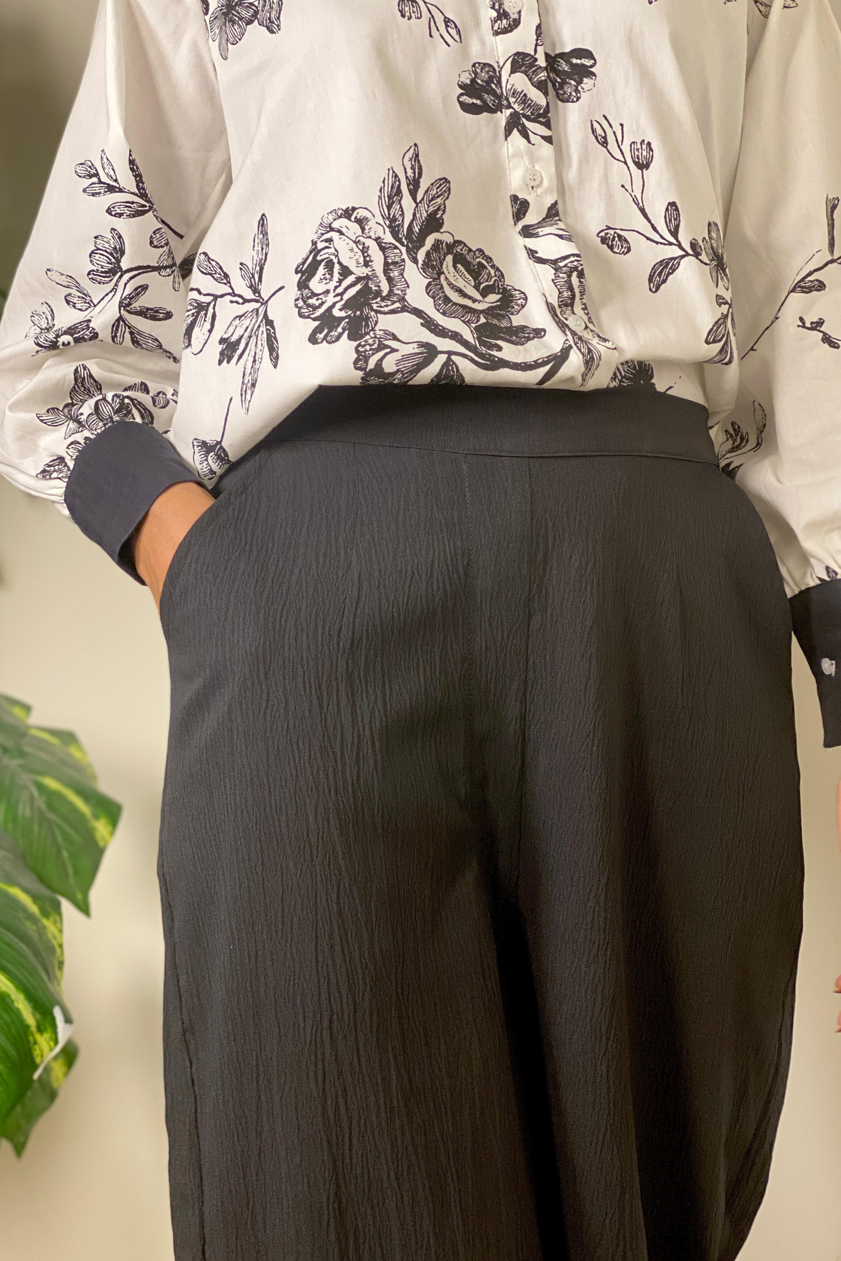 Made of Cotton Viscose Blend giving crinkle and stretchy effect, these comfortable and versatile trousers with crinkle effect are perfect for any workout or casual day out.