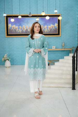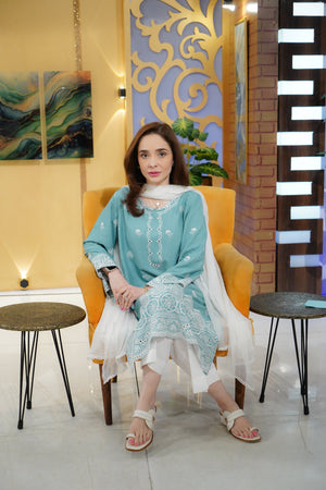 Chikankaari embroidered Cambric Suit with cut work embroidered sleeves