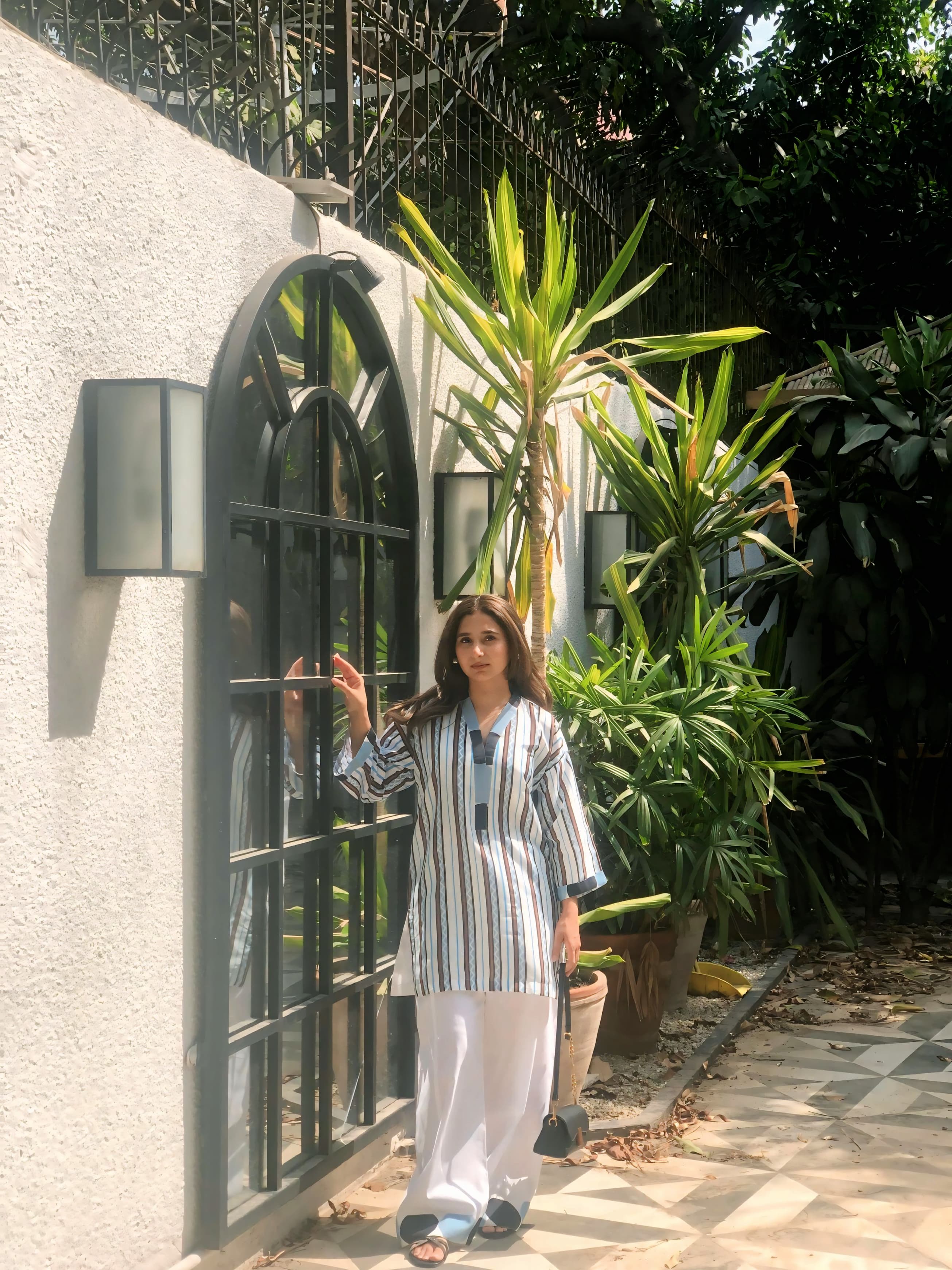 Get ready to fall in love with this stripe drop shorlder co-ord set, adorned with oppoist stripes all over! The perfect mix of cute and comfy.