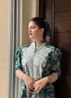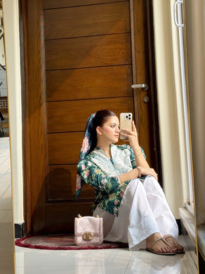Introducing abstract print from our Lawn collection – where playful meets polished! This outfit boasts whimsical embroidery gracefully adorning our applique cut kameez adding a charming touch to the neckline. Paired with our farashi ivory shalwar, it takes the entire look to new heights.