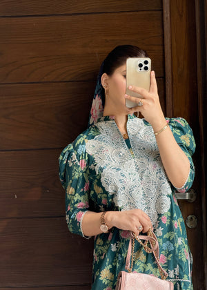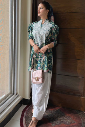 Urban Cut 2 Piece Cotton Embroidred Co- Ord Set with Farshi Salwar