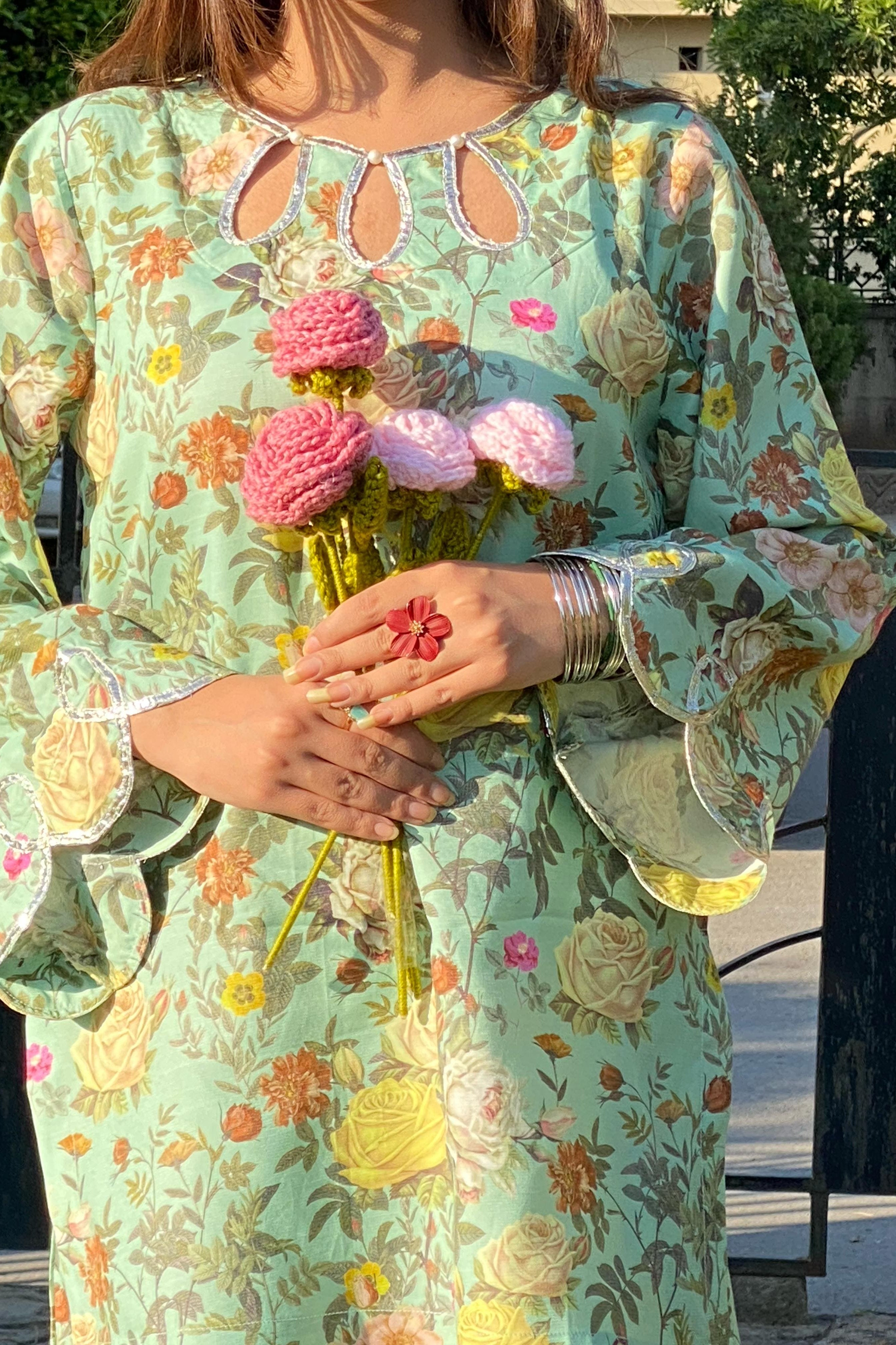 Urban Cut 2 Piece Cotton Printed Co- Ord Set with Farshi Shalwar