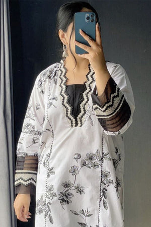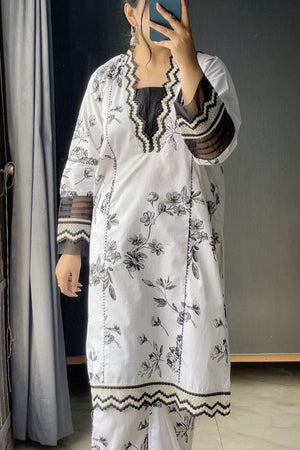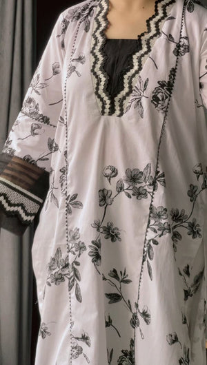 Elevate your daily style with this embroidered Suit from the latest pret Yarn Dyed summer collection with Heavy Embroidred lace in mathcing solid trouser