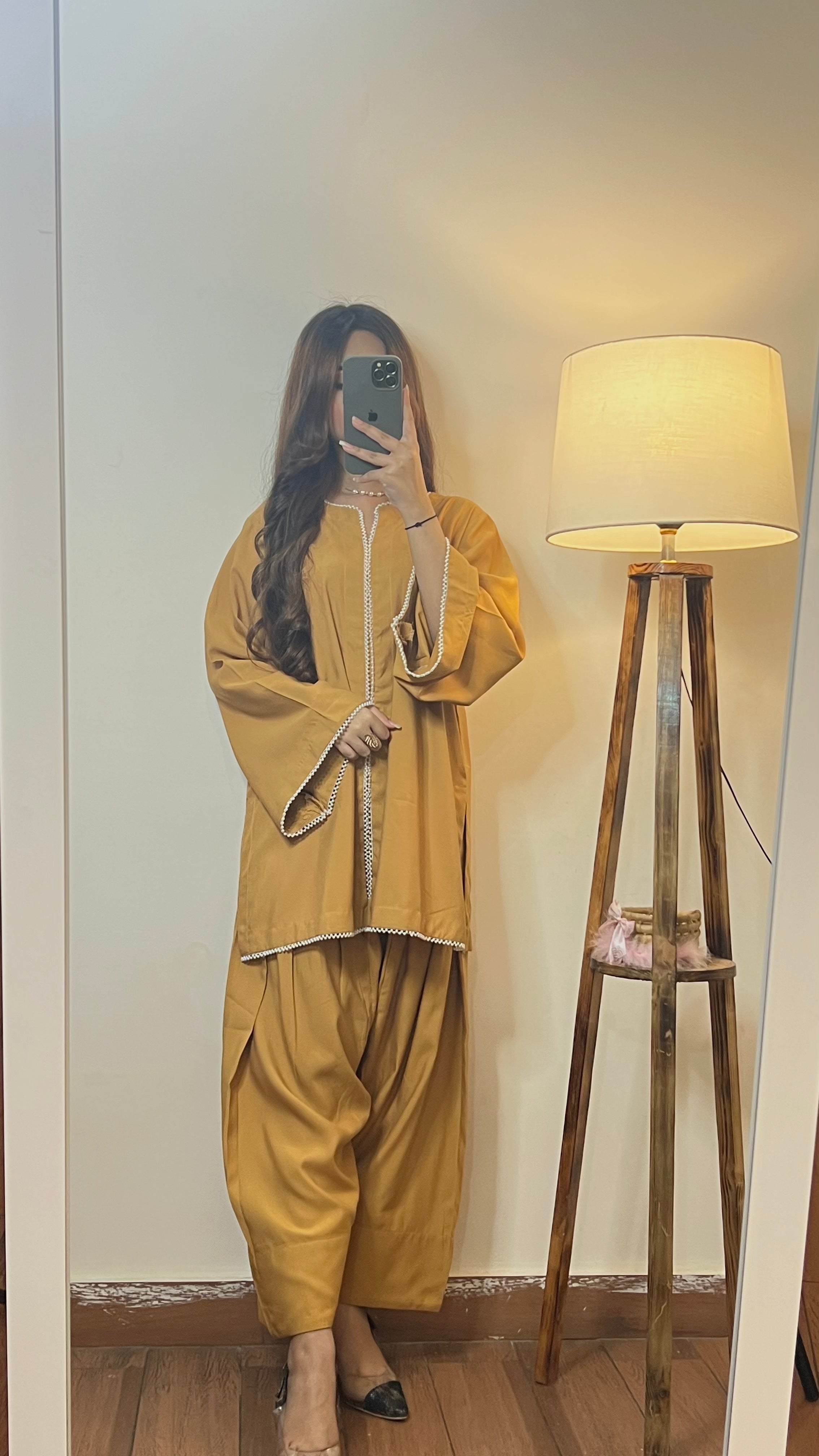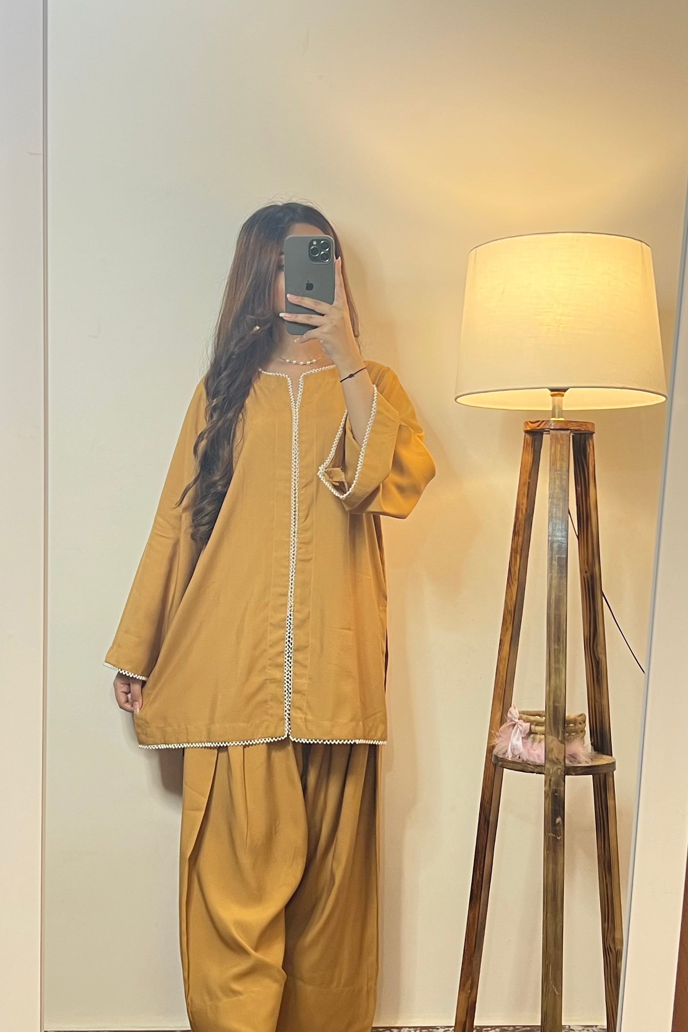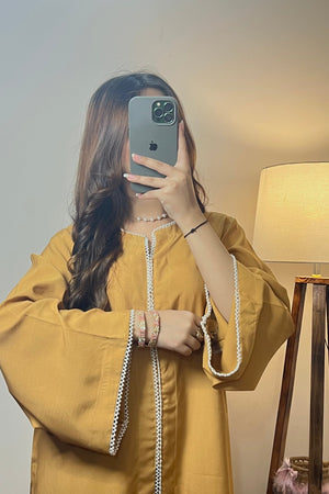 A truly stunning creation! This beautifully crafted outfit features a delicate pearl button attachments on premium cotton lawn for perfect touch of elegance. The straight kameez and Farshi salwar combine to create a modern yet timeless look.