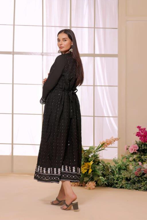 â?¨ Elevate your elegance with this exquisite Black Chiffon Maxi! ð??¸ Designed to exude grace, it features a delicately embroidered V-neckline and a beautifully adorned bordered hemline for a refined touch. ð??? The lightweight chiffon fabric drapes effortlessly, making it perfect for any special occasion. ð??« A true blend of sophistication and charm! ð???