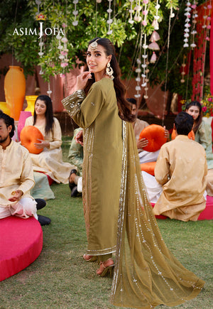 Celebrate the essence of festivity with Asim Jofa’s “Jag Mag Collection”. This outfit is adorned with two-toned gold zari and shimmering light gold sequins and embodies the spirit of joyous celebration. The intricate embroidery creates a mesmerizing pattern exuding timeless elegance. Paired with a matching dupatta that continues the theme of luxurious embroidery, this ensemble ensures you stand out in any crowd. Illuminate every festivity in this radiant outfit that redefines semi-formal wear.
