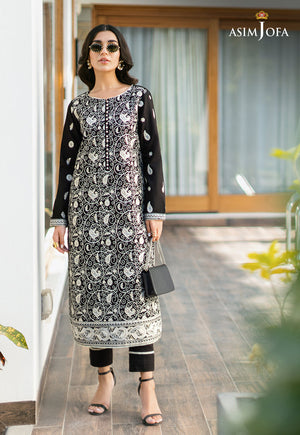 Make a statement in this black cambric ensemble adorned with anfractuous branches and opulent leaves embroidery, exuding an air of elegance and luxury. Leave a lasting impression with Asim Jofa’s Essential collection. Stay Timeless!