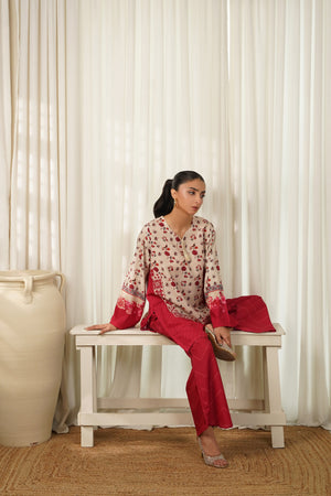 This 2 piece printed-colored co-ord set features luxurious and comfortable fabric and impeccable cuts given to every detail of the article, offering versatility and sophistication for any occasion.