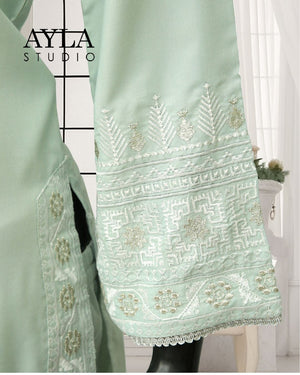 Grace meets elegance with our Hareem 2-Piece Solid Embroidery Set in a refreshing Pastel Green shade. Crafted for the modern woman who cherishes tradition, this ensemble features: