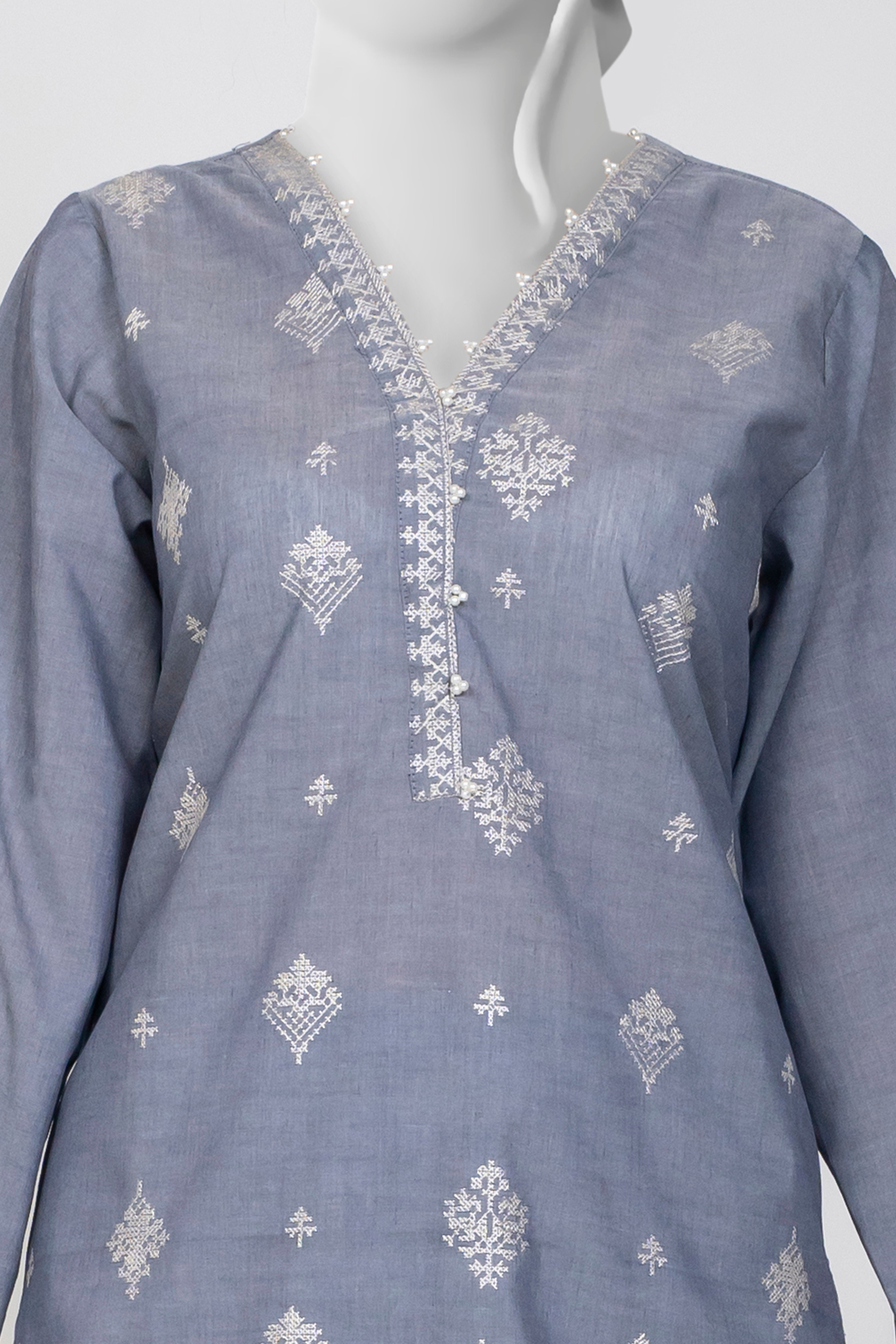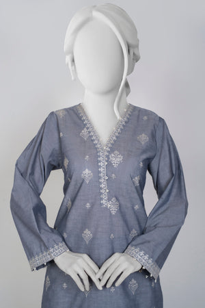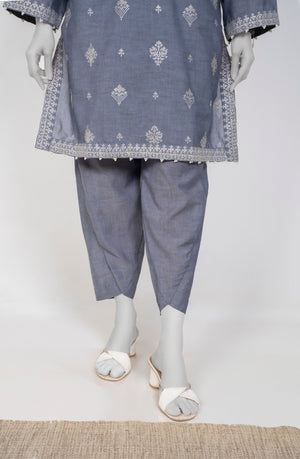 Embrace the Chambrey Winters 2025 collection with this elegant Charcoal 2-piece set featuring solid embroidery that adds refined texture and charm. Paired with tulip-shaped trousers, it offers a fresh and graceful silhouette perfect for stylish winter wear. This ensemble blends comfort and sophistication, making it an ideal choice for those seeking understated elegance with a modern touch.