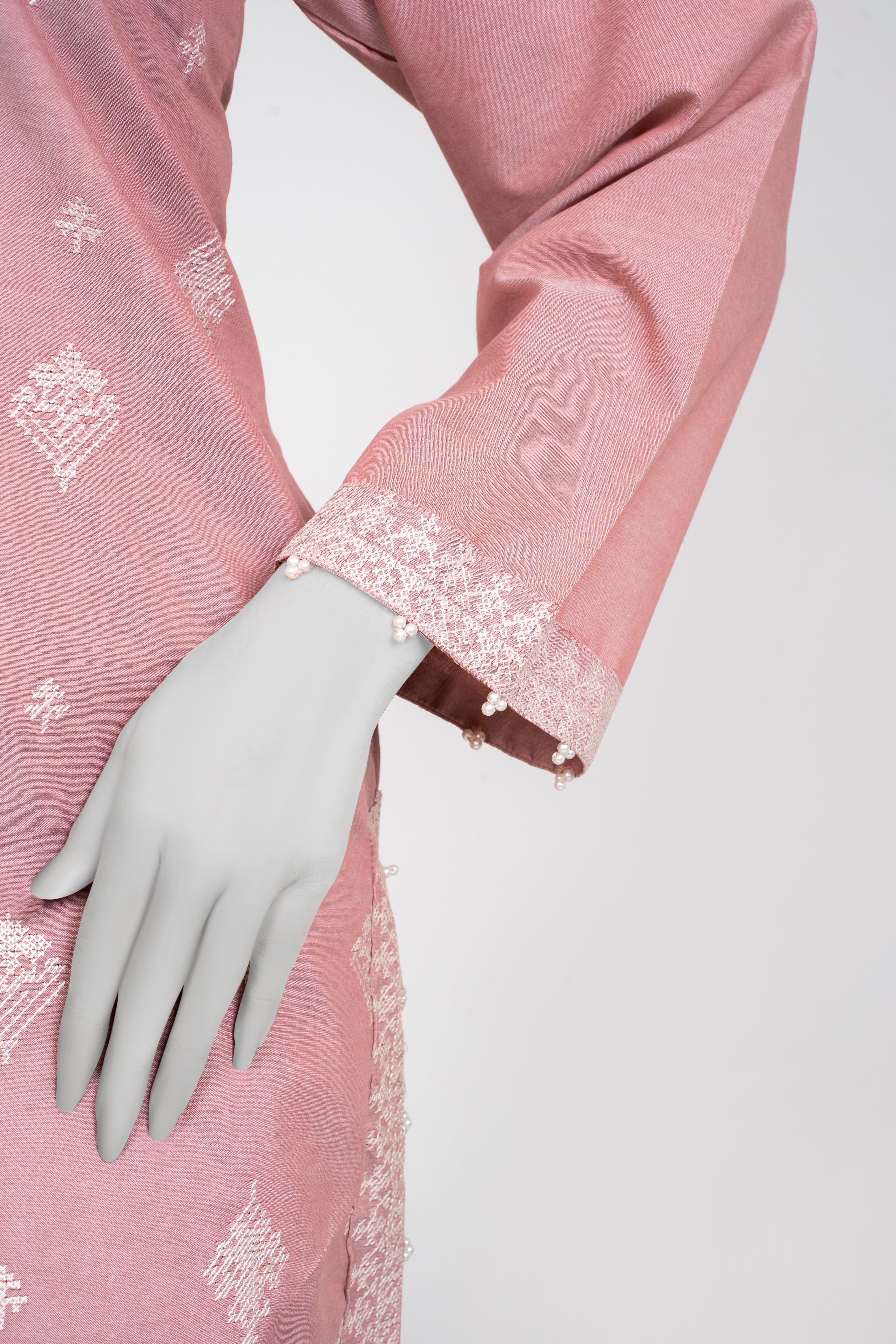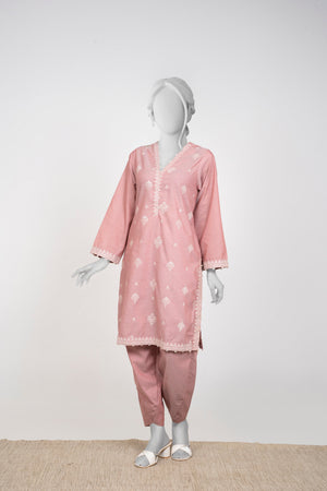 Embrace the Chambray Winters 2025 collection with this elegant Pink 2-piece set featuring solid embroidery that adds refined texture and charm. Paired with tulip-shaped trousers, it offers a fresh and graceful silhouette perfect for stylish winter wear. This ensemble blends comfort and sophistication, making it an ideal choice for those seeking understated elegance with a modern touch.