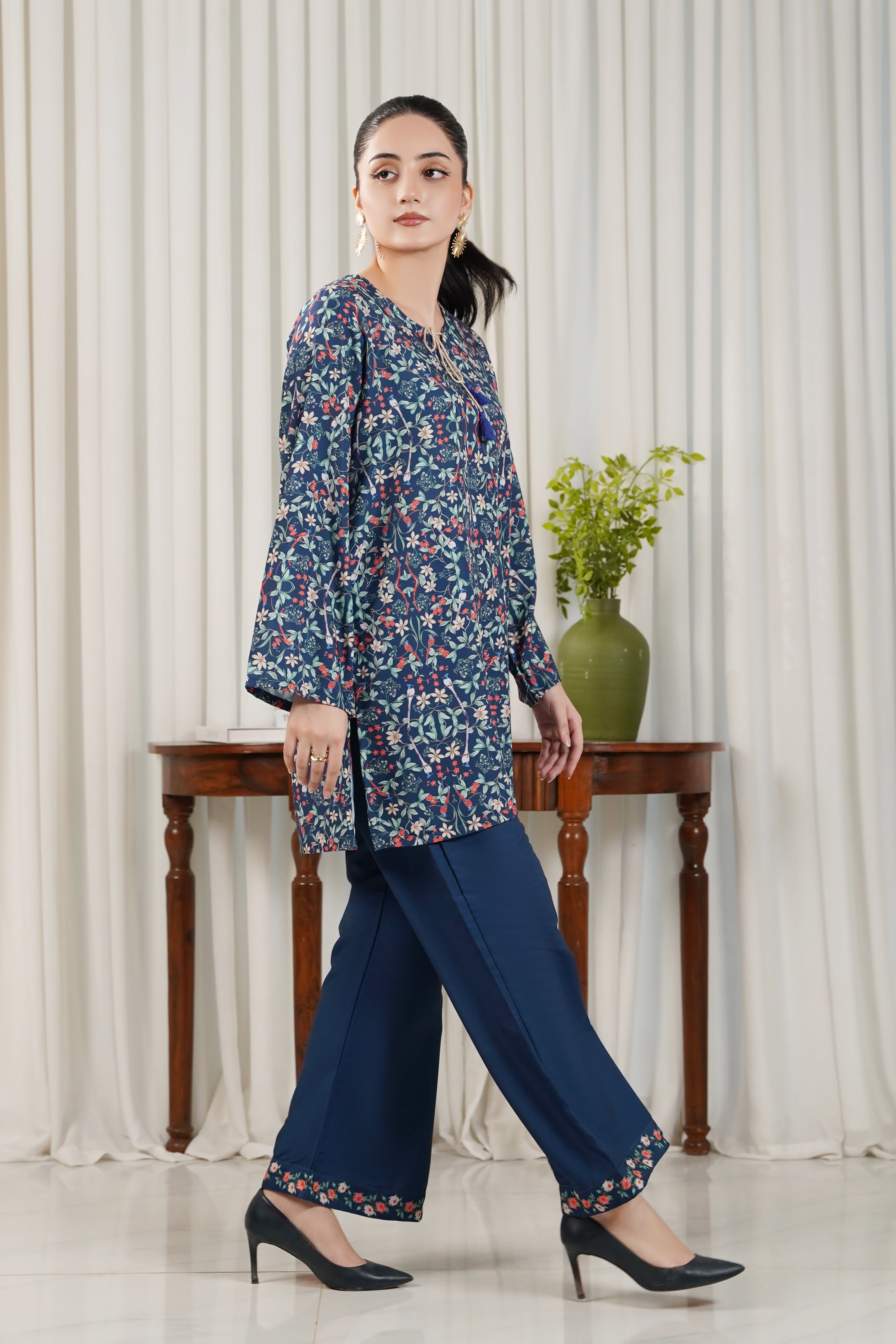 This 2 piece printed-colored co-ord set features luxurious and comfortable fabric and impeccable cuts given to every detail of the article, offering versatility and sophistication for any occasion.