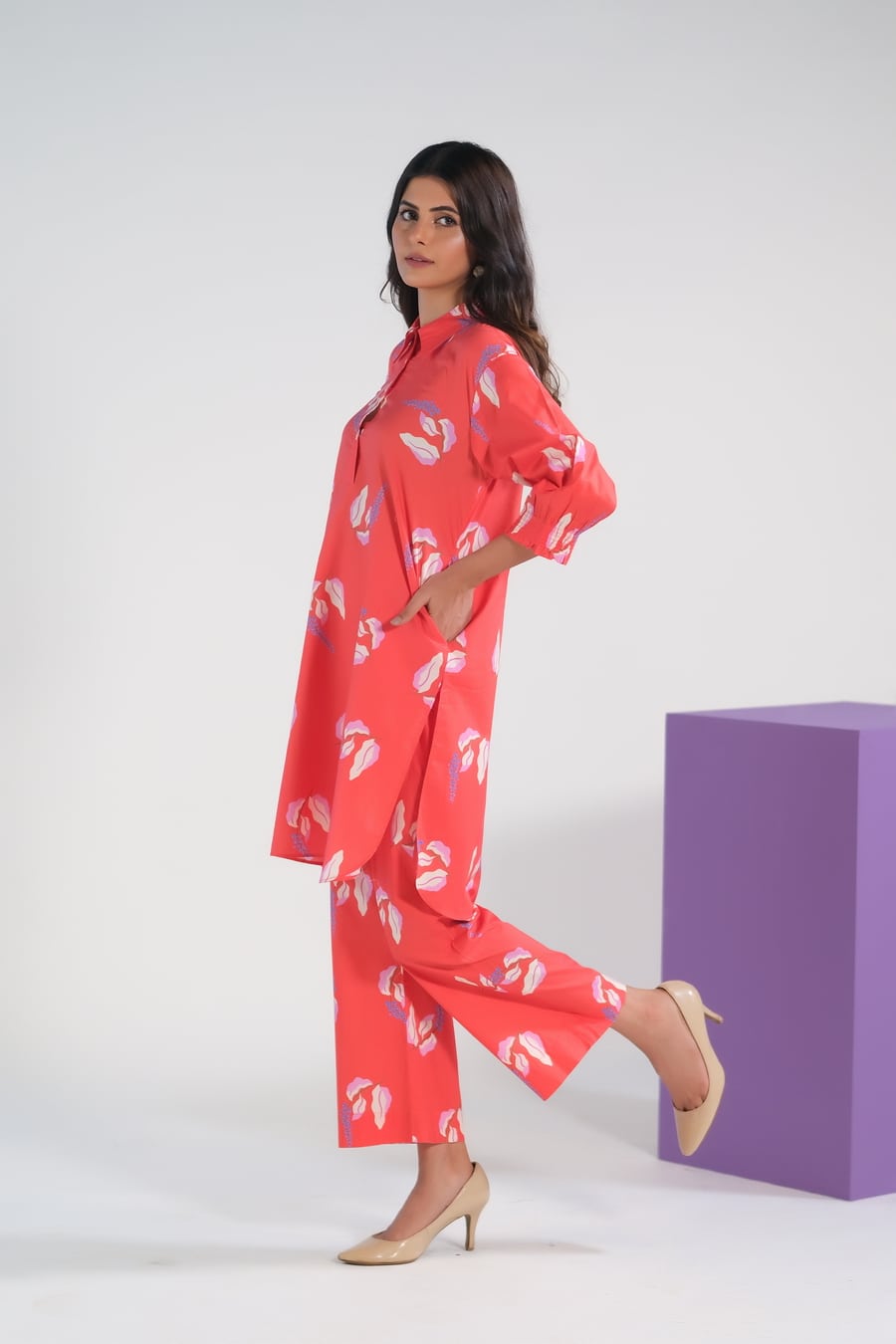 Sprinkles Stitched 2 Piece Summer Co Ord Sets Women Collection'2025-Bean Red Lavender - Cambric