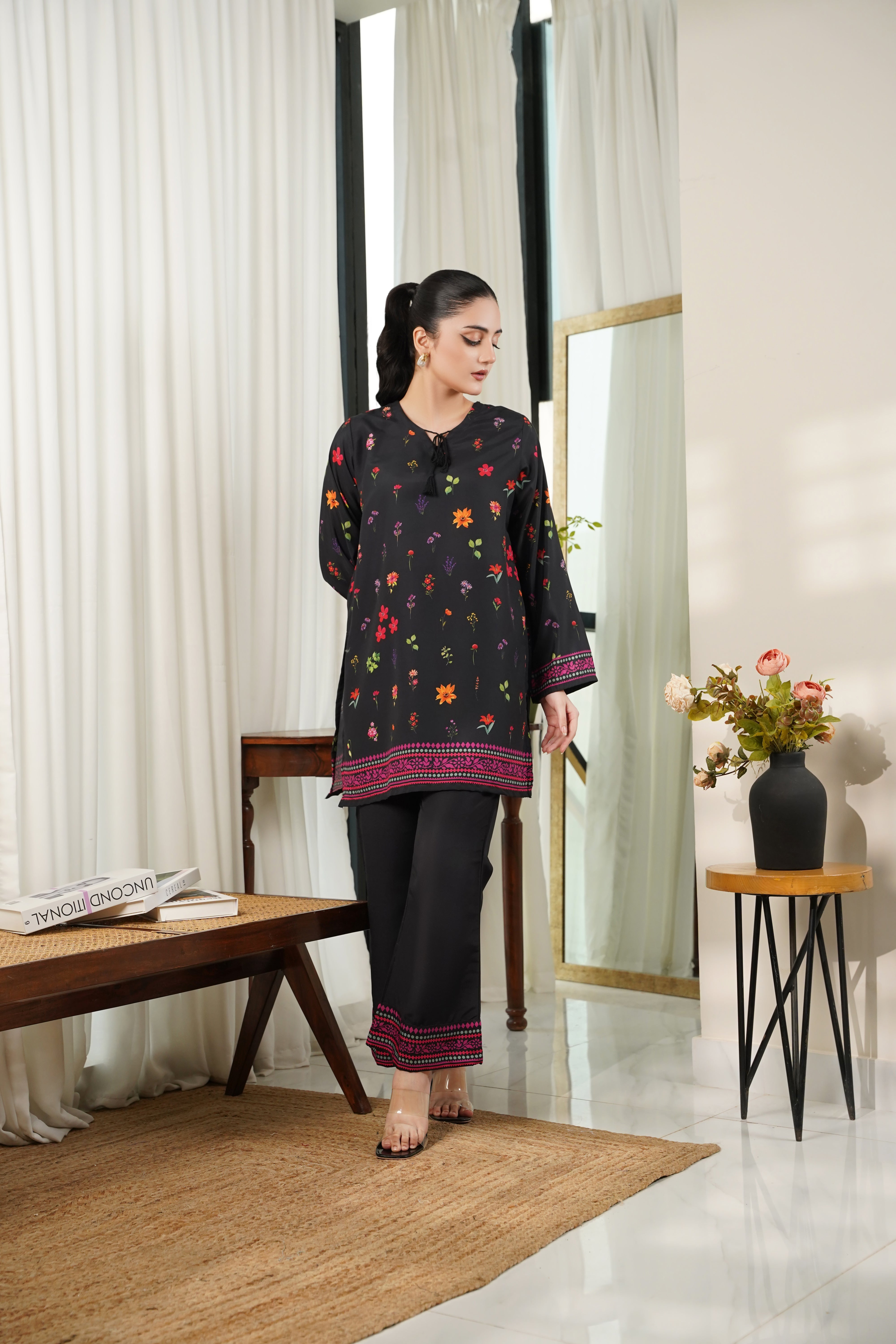 This 2 piece printed-colored co-ord set features luxurious and comfortable fabric and impeccable cuts given to every detail of the article, offering versatility and sophistication for any occasion.