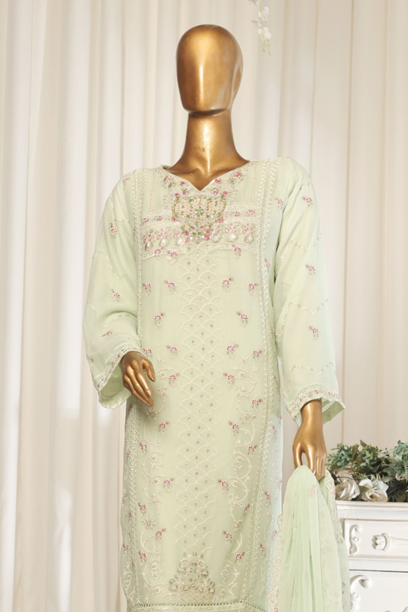 Bin Saeed Stitched 3 Piece Emb Chiffon Collection'2025-STSC-1793-Pista