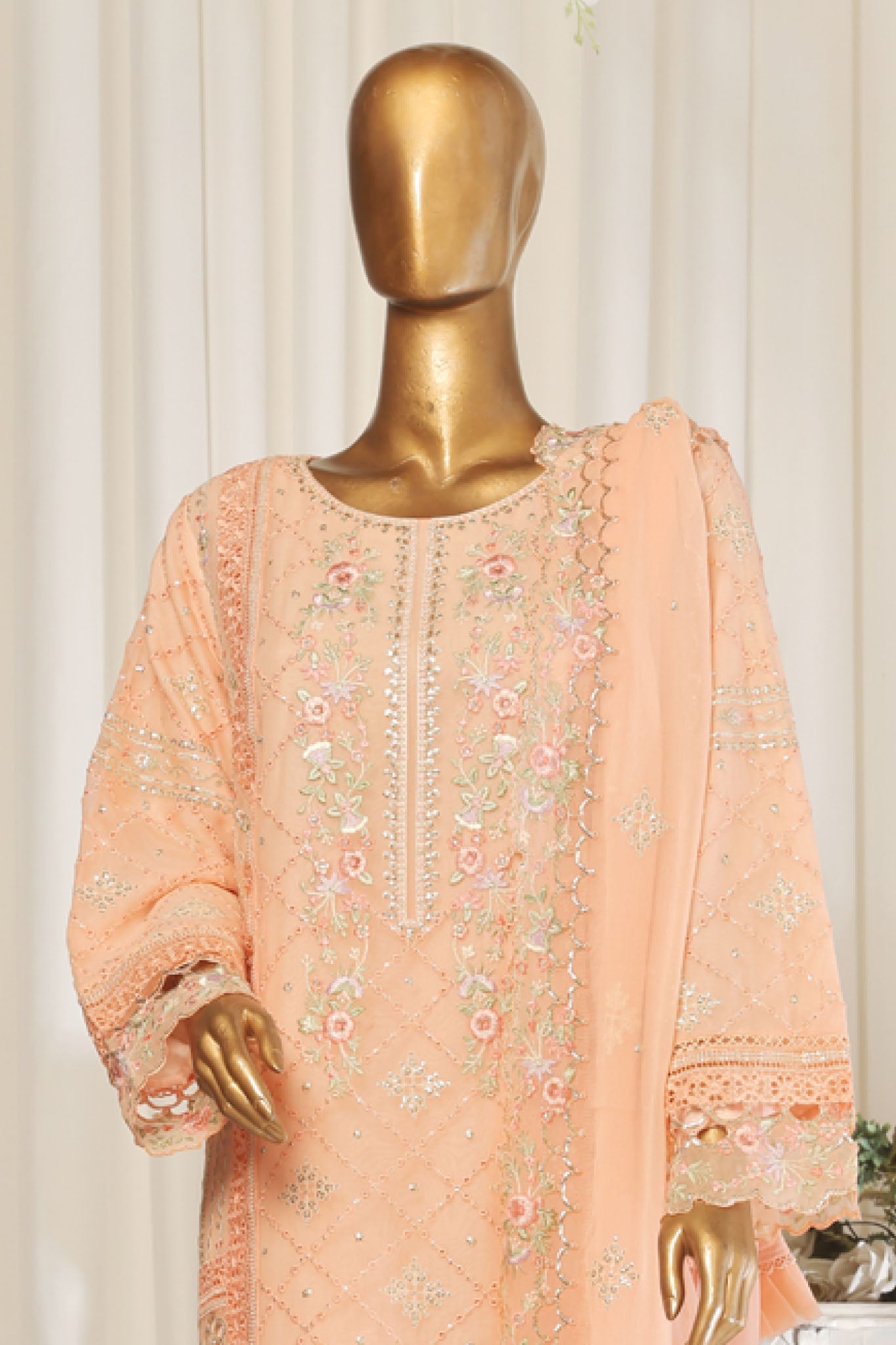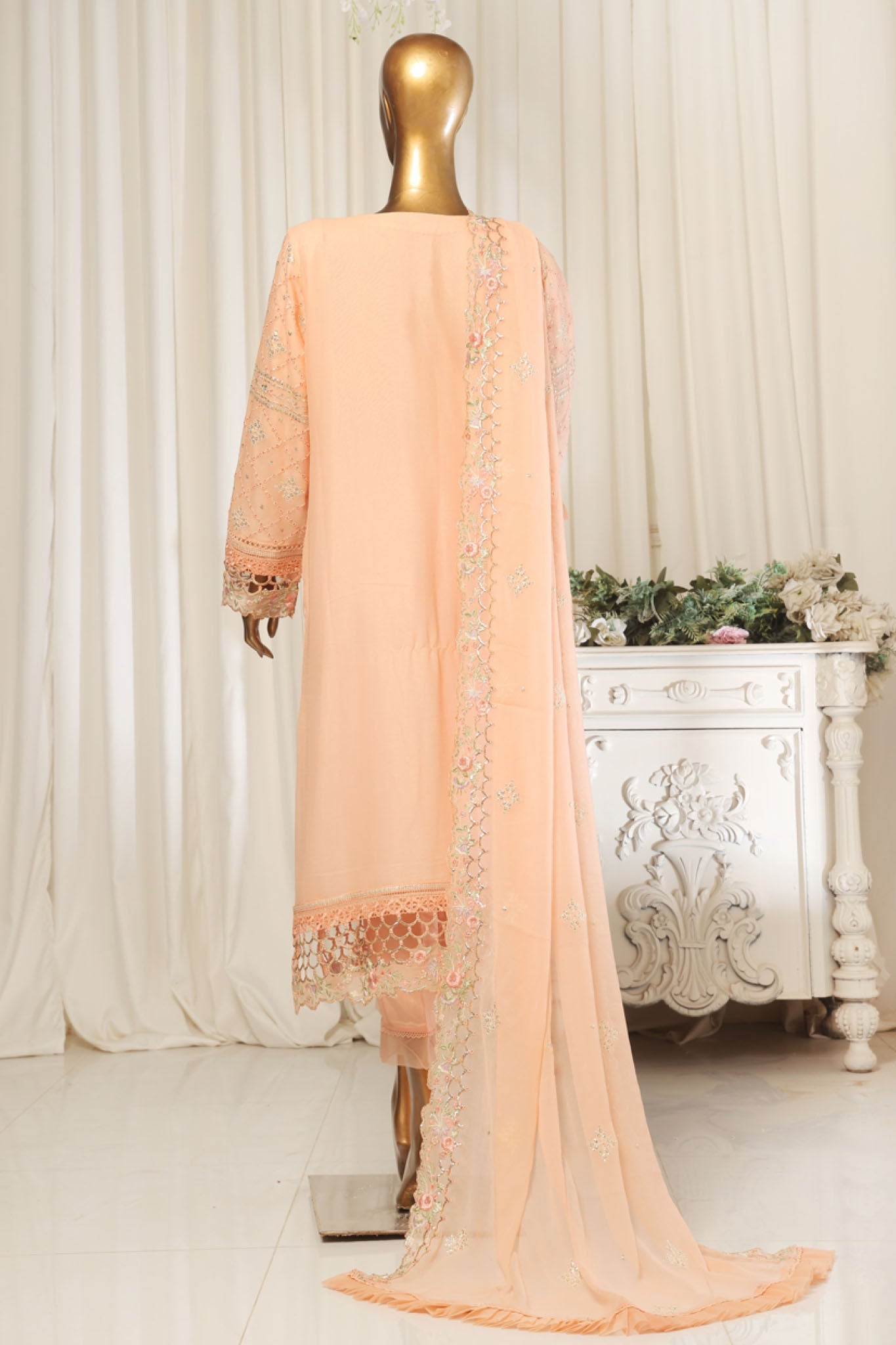 Bin Saeed Stitched 3 Piece Emb Chiffon Collection'2025-ZEFC-1794-Peach