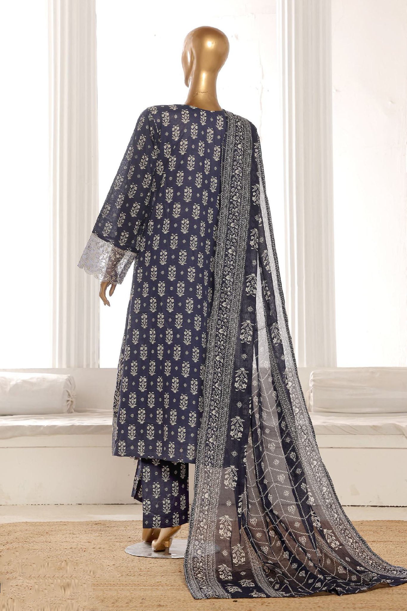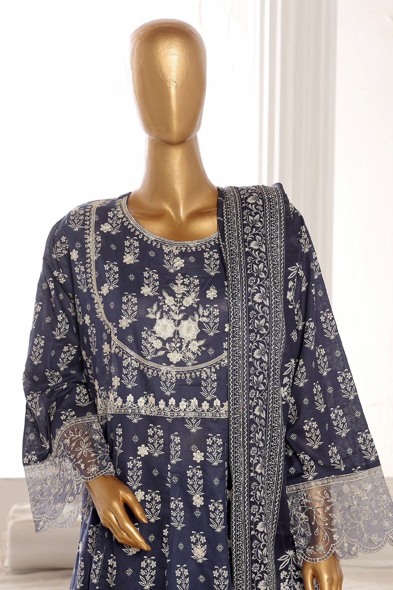 Bin Saeed Stitched 3 Piece Emb Lawn Frock Vol-02 Collection-SM-1633-Blue