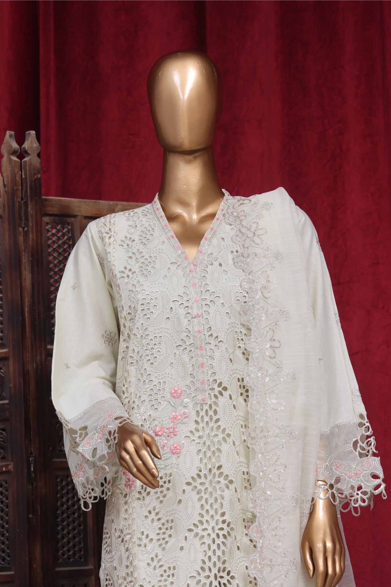 - Embroidered Cotton Net?Dupatta