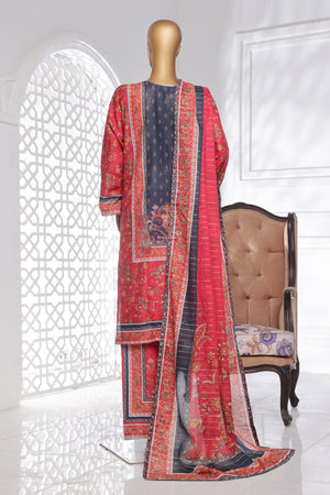 Bin Saeed Stitched 3 Piece Exc Chikankari Lawn Collection'2025-SM-2139-Red