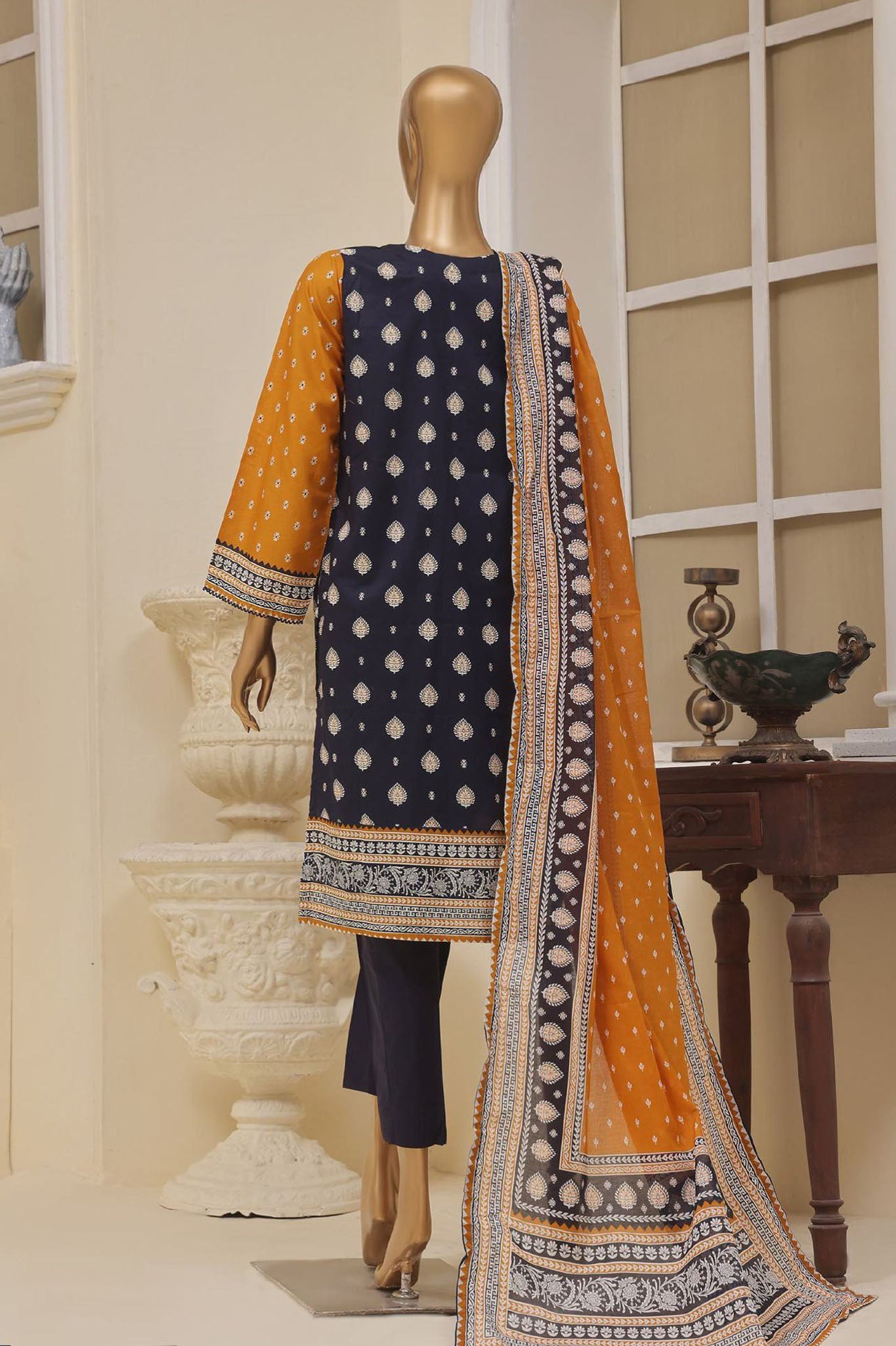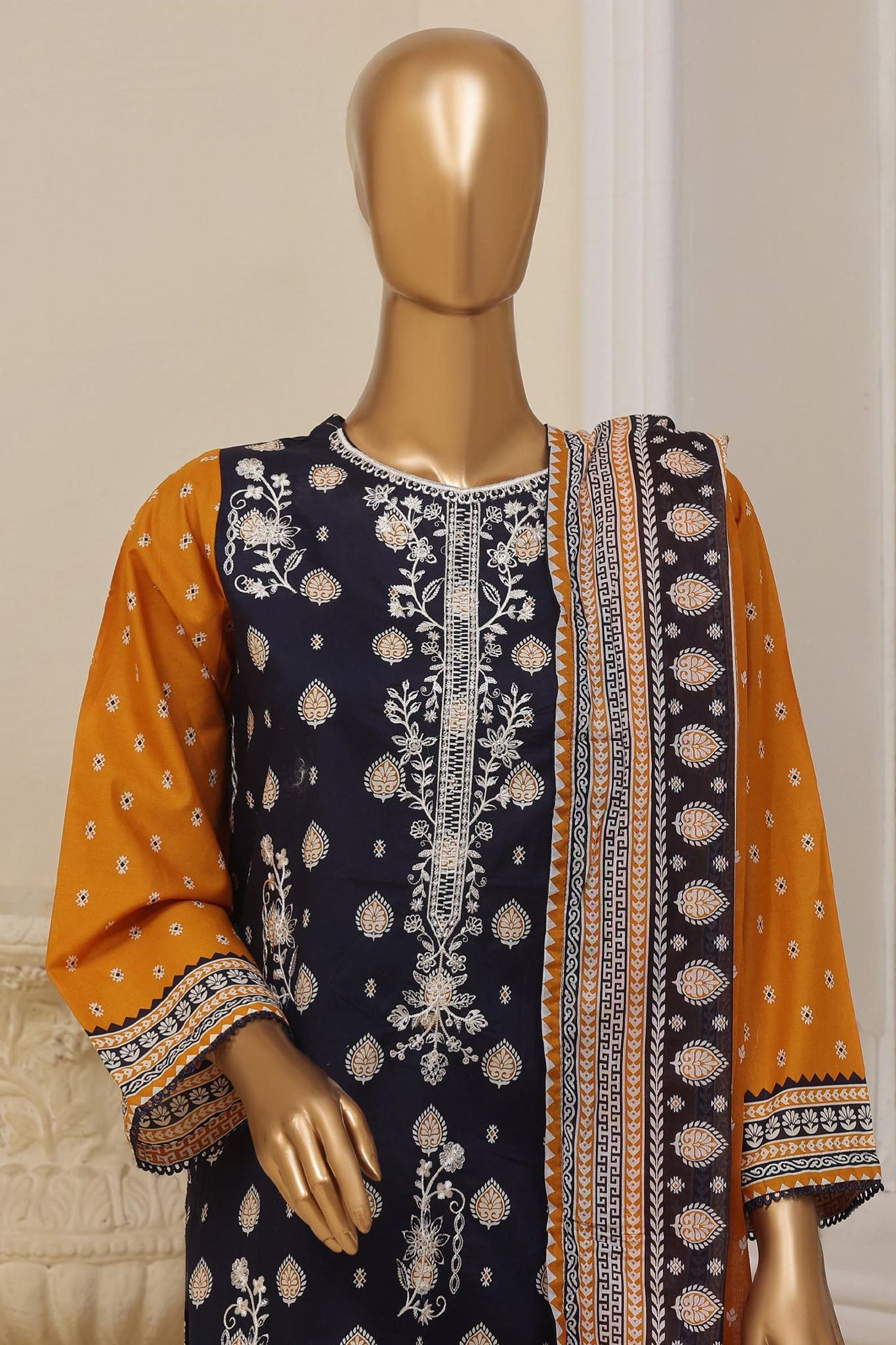 Bin Saeed Stitched 3 Piece Exclusive Emb Lawn Vol-01 Collection-SM-1501-Blue