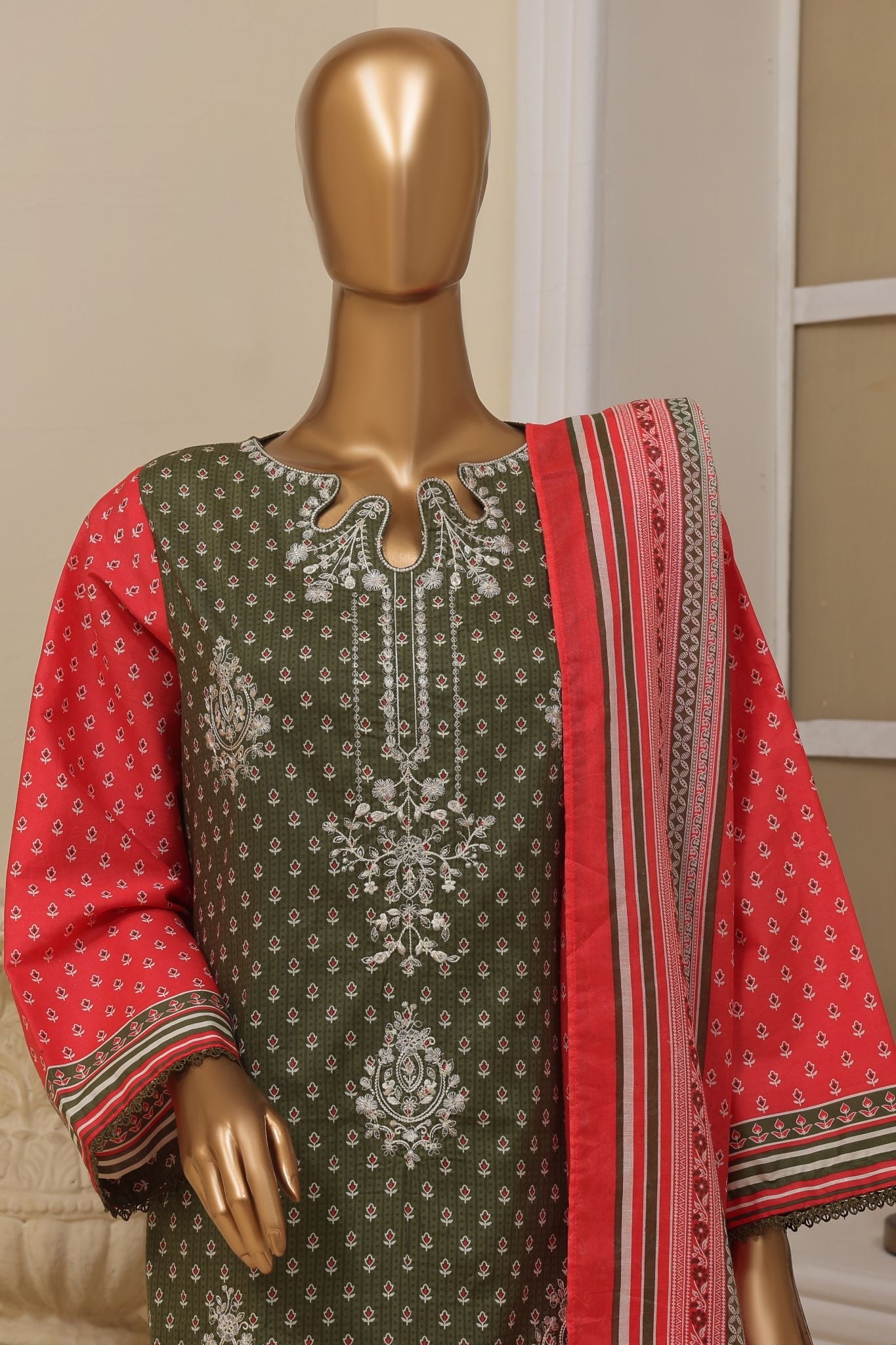 Bin Saeed Stitched 3 Piece Exclusive Emb Lawn Vol-02 Collection-SM-1568-Green