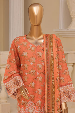 Bin Saeed Stitched 3 Piece Exclusive Emb Lawn Vol-02 Collection-SM-1576-Peach