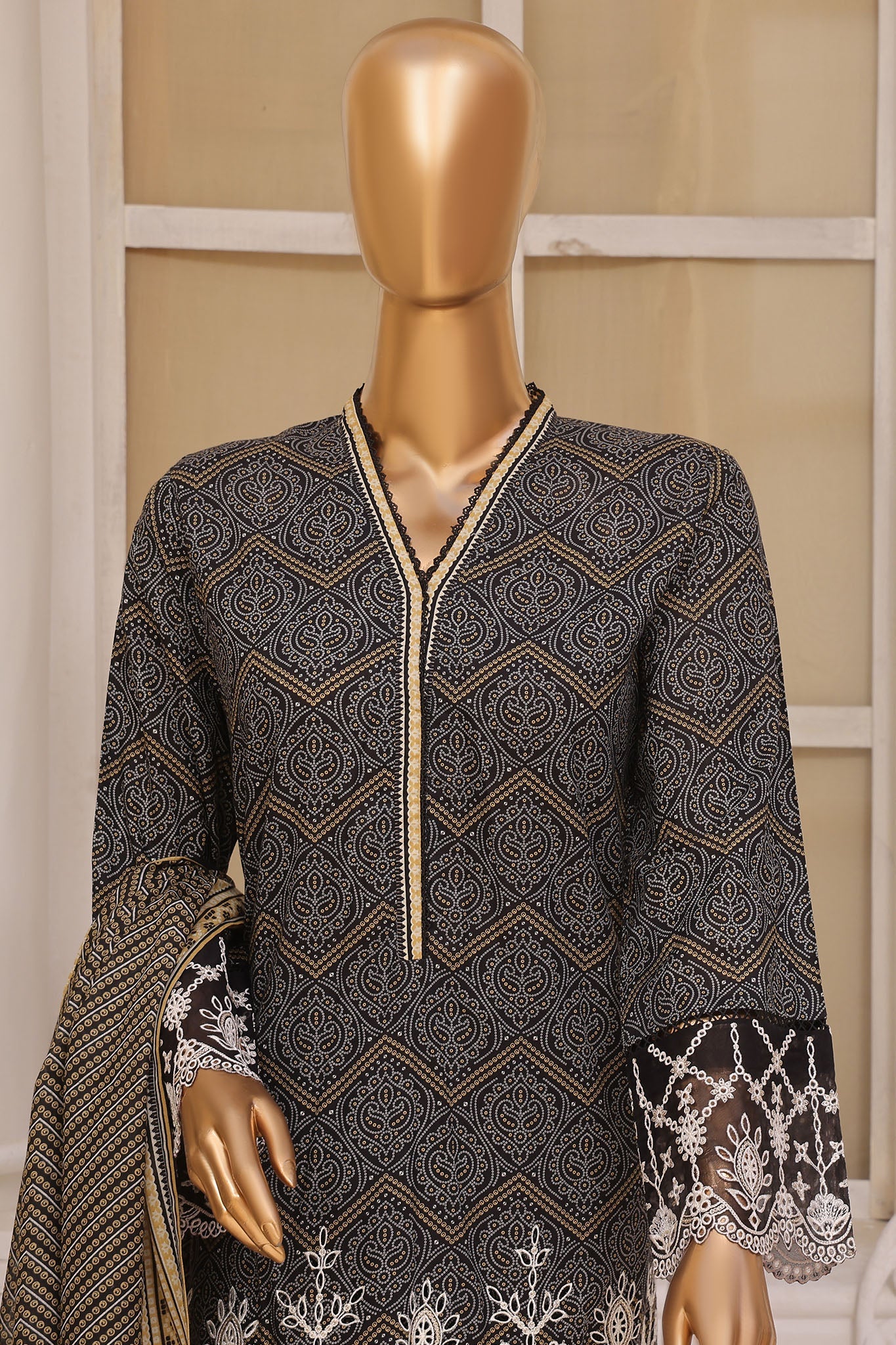 Bin Saeed Stitched 3 Piece Exclusive Emb Lawn Vol-02 Collection-SM-1579-Black