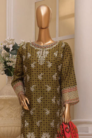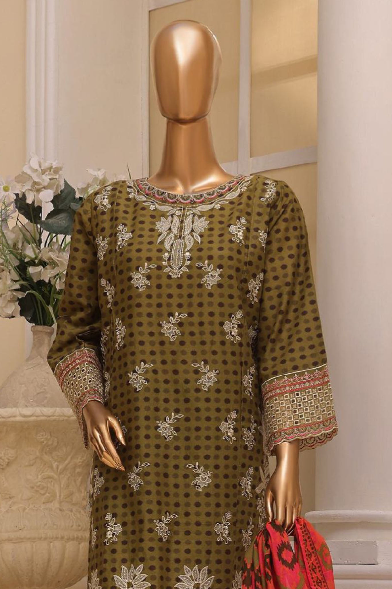 Bin Saeed Stitched 3 Piece Exclusive Emb Lawn Vol-03 Collection-SM-1689-Mehndi