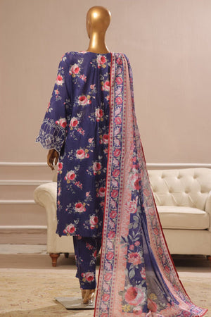 Bin Saeed Stitched 3 Piece Exclusive Emb Lawn Vol-03 Collection-SM-1690-Blue