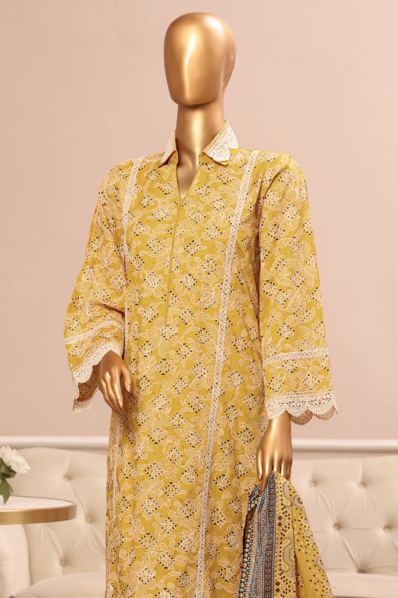 Bin Saeed Stitched 3 Piece Exclusive Emb Lawn Vol-03 Collection-SM-1699-Yellow