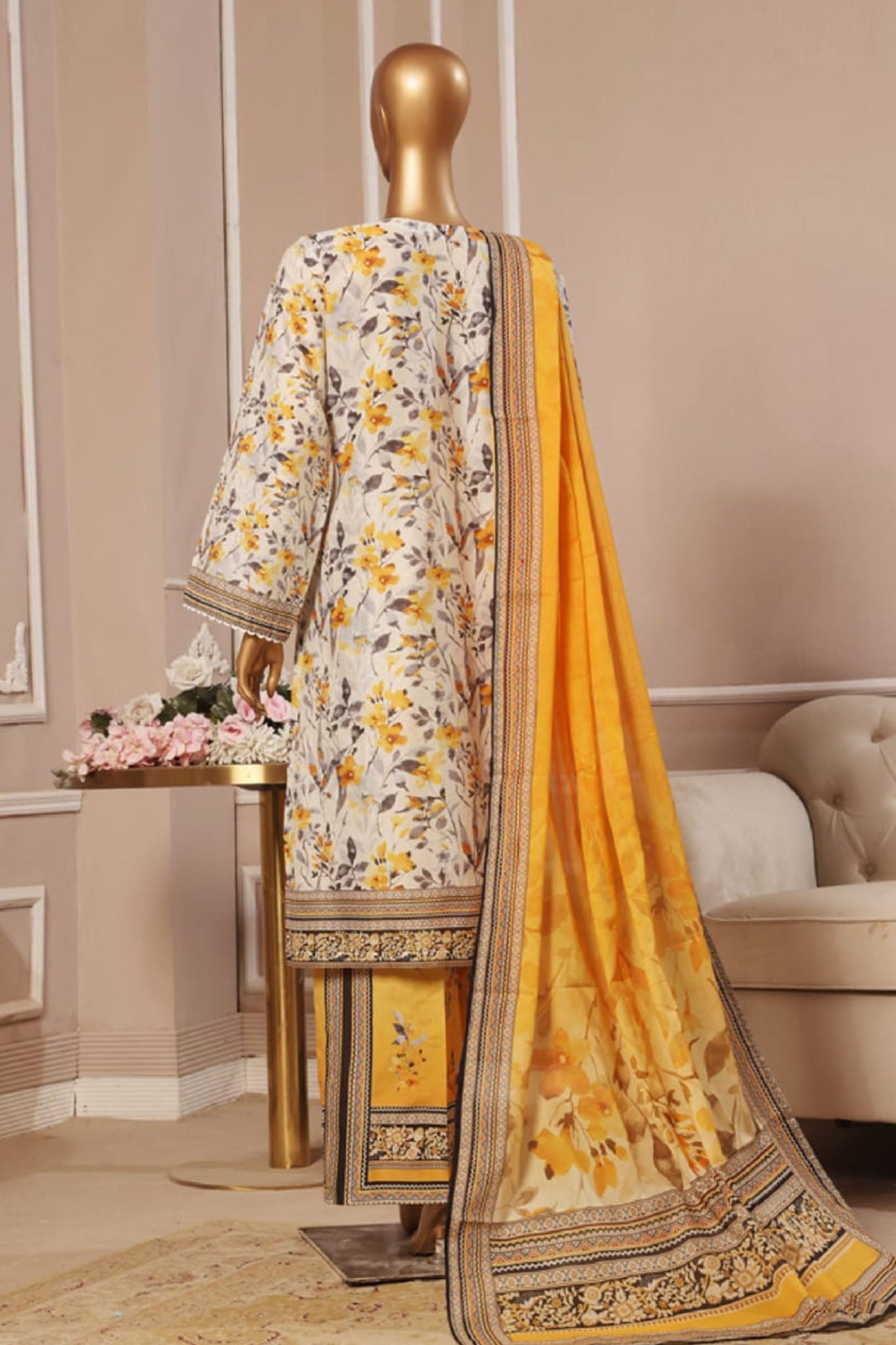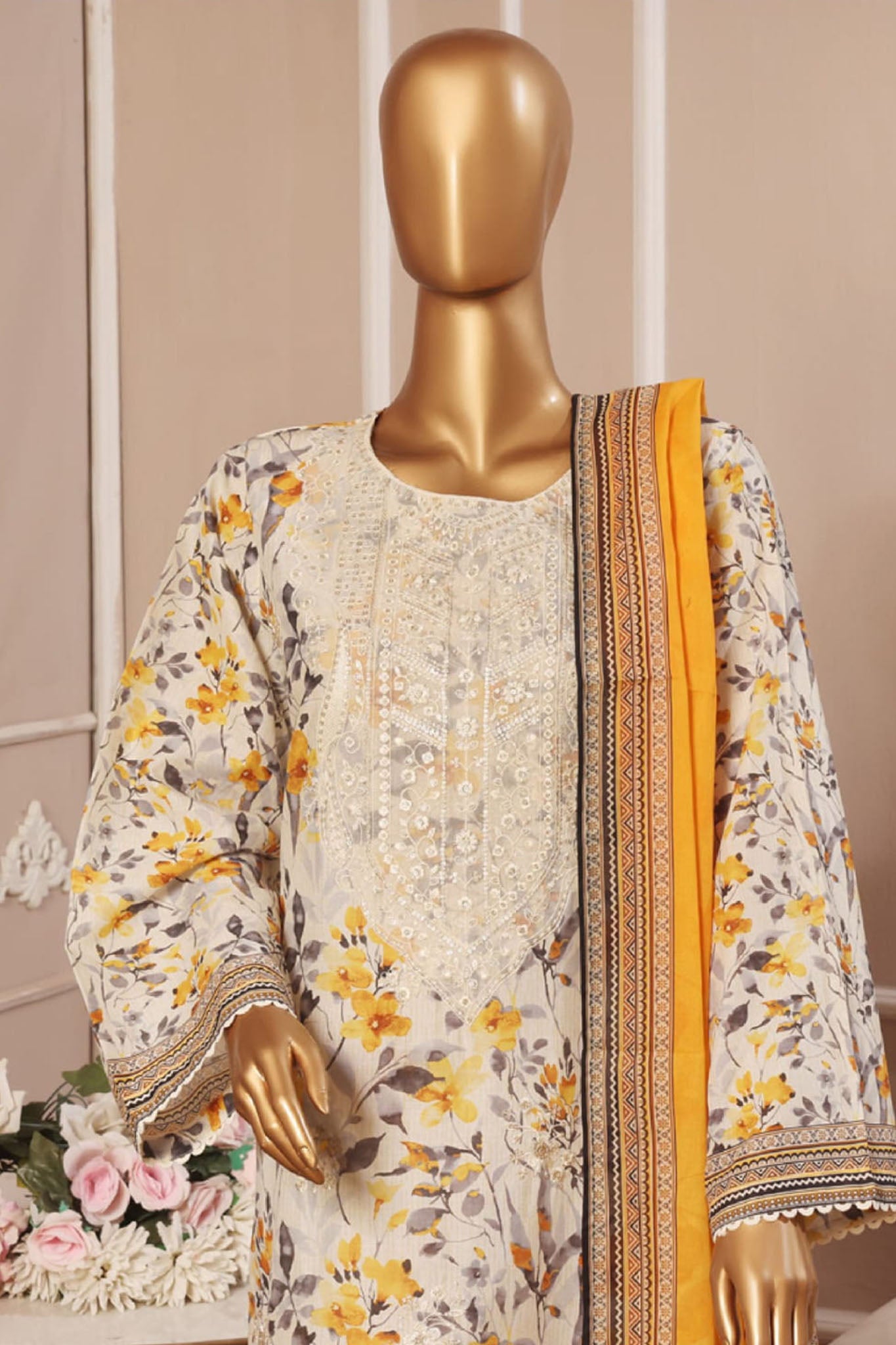 Bin Saeed Stitched 3 Piece Exclusive Emb Lawn Vol-05 Collection-SM-1933-Yellow