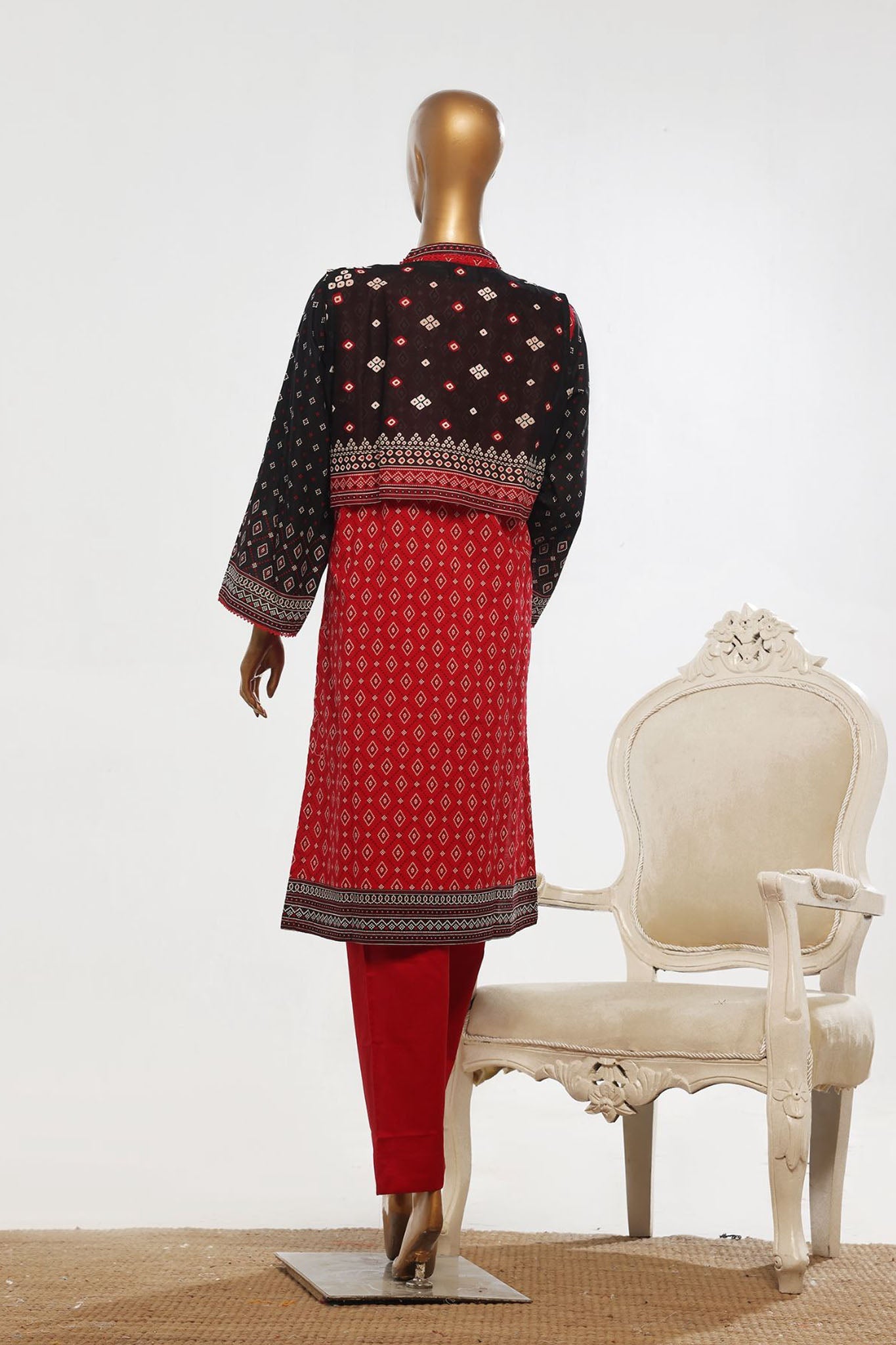 Bin Saeed Stitched 3 Piece Exclusive Emb Lawn With Coat Collection-SM-1648-Red