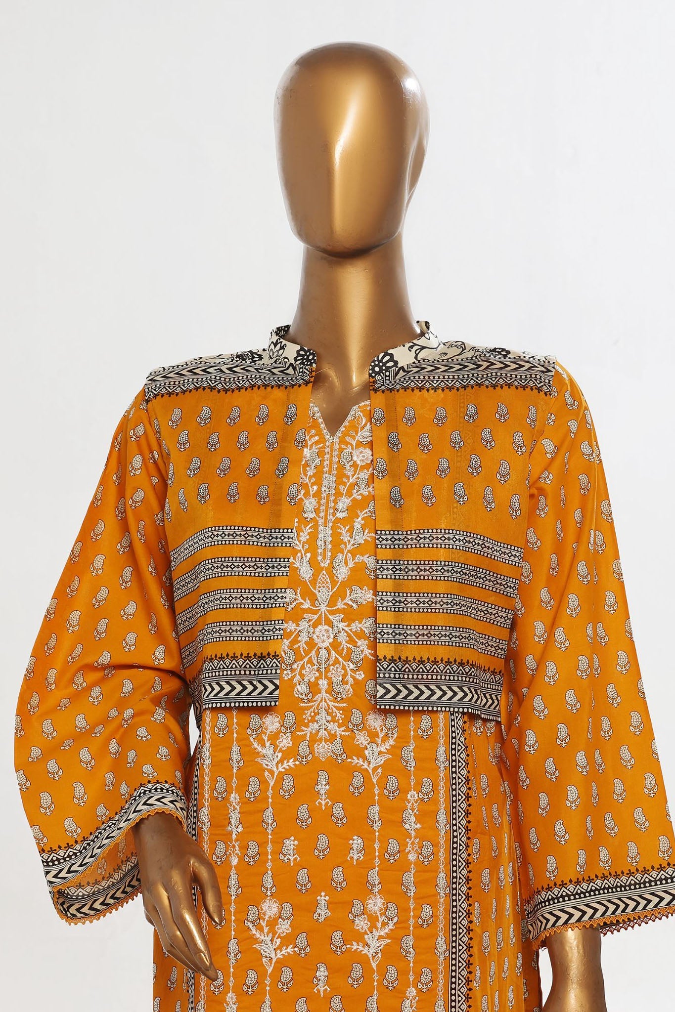 Bin Saeed Stitched 3 Piece Exclusive Emb Lawn With Coat Collection-SM-1653-Yellow
