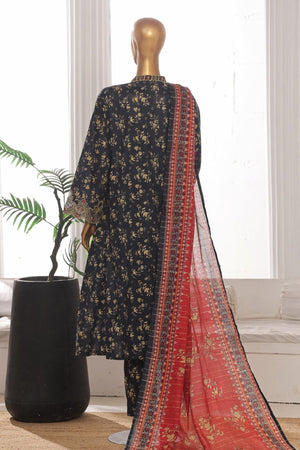 Bin Saeed Stitched 3 Piece Exclusive Lawn Frock Vol-01 Collection-SM-1470-Black