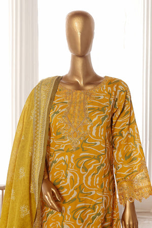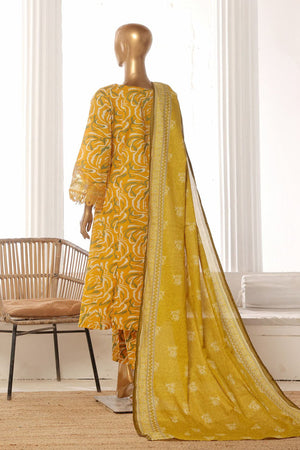 Bin Saeed Stitched 3 Piece Exclusive Lawn Frock Vol-01 Collection-SM-1476-Yellow