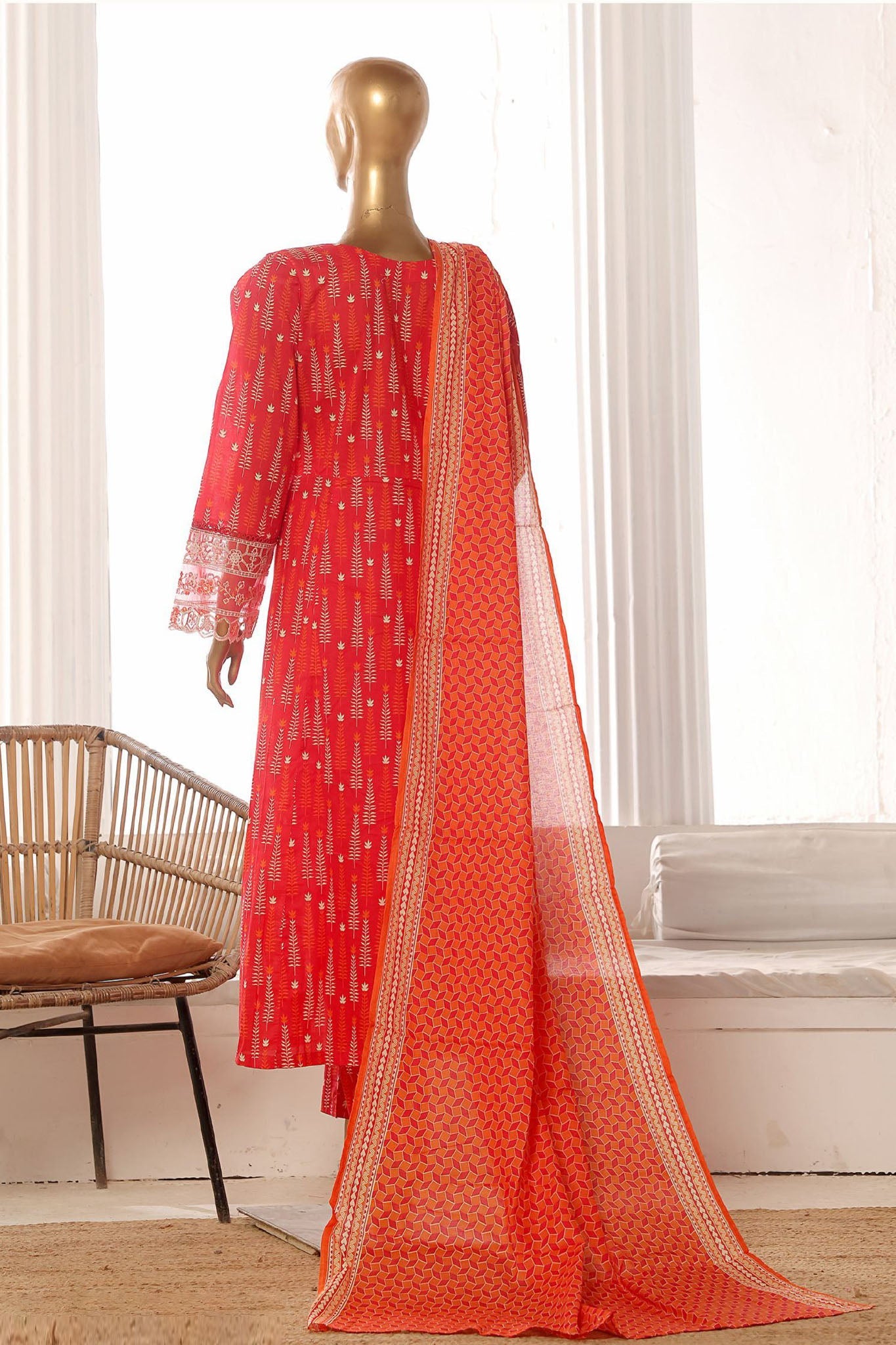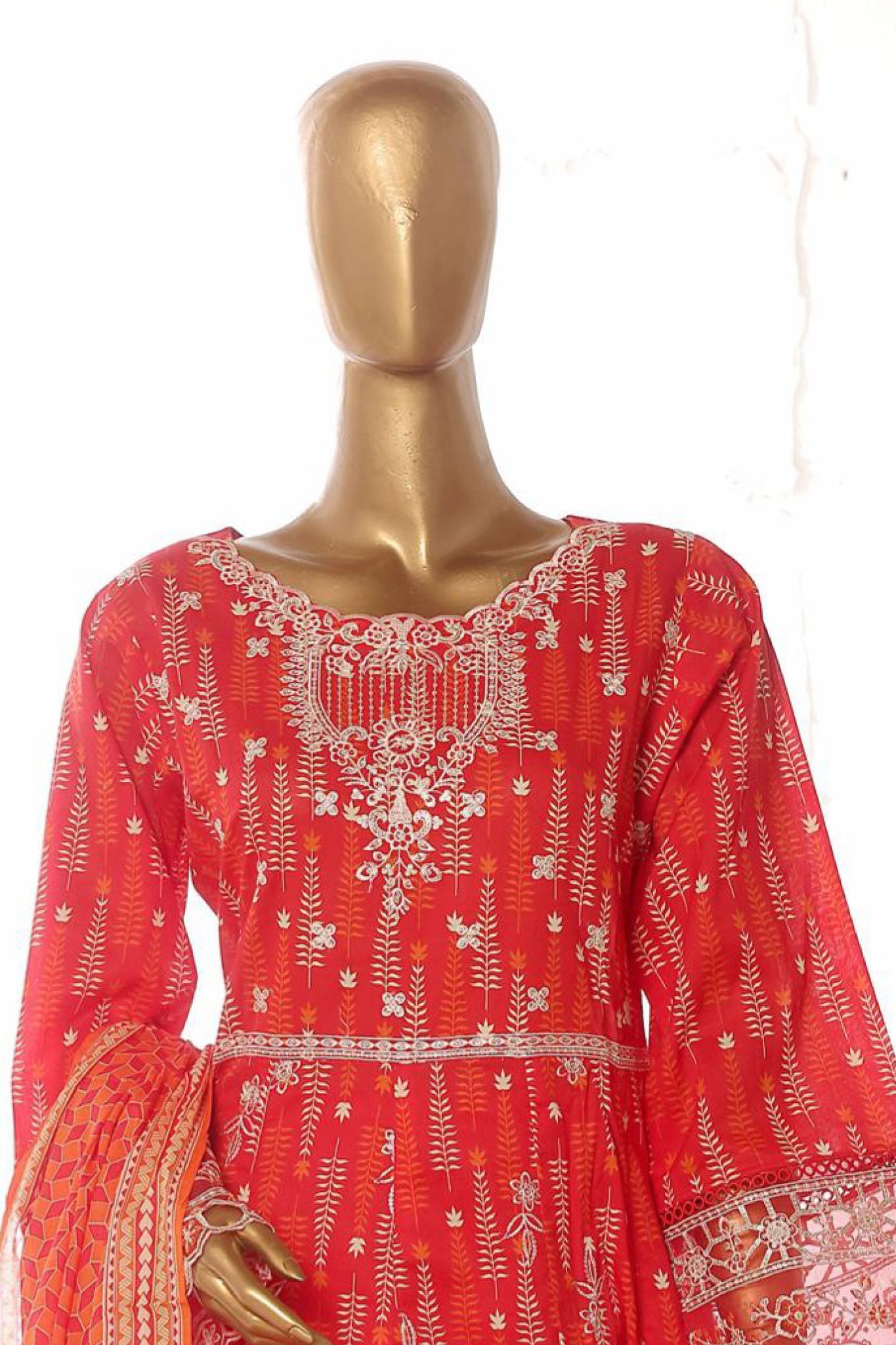 Bin Saeed Stitched 3 Piece Exclusive Lawn Frock Vol-01 Collection-SM-1484-Red