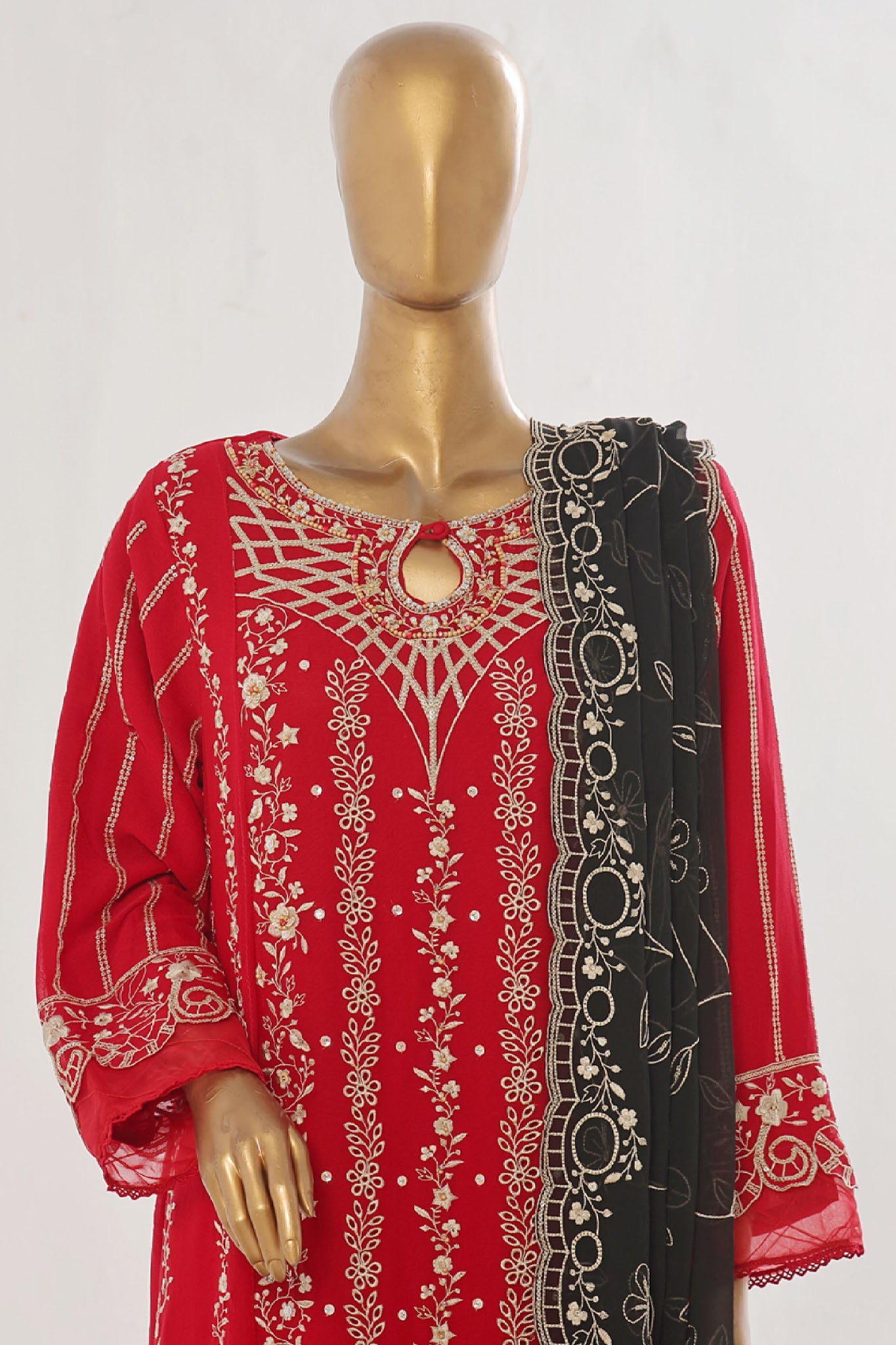 Bin Saeed Stitched 3 Piece Luxury Emb Chiffon Collection'2025-RTSC-1553-Red