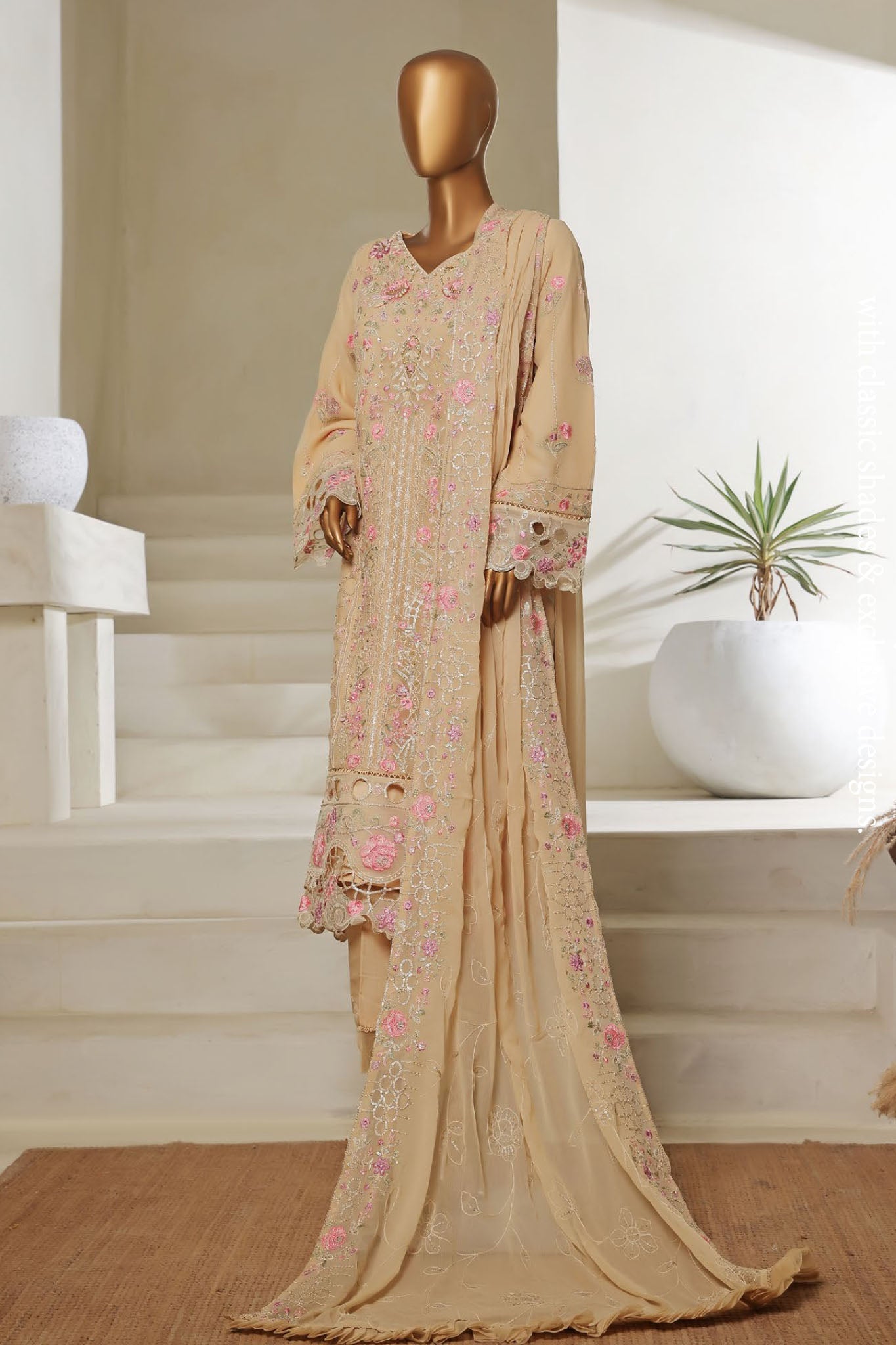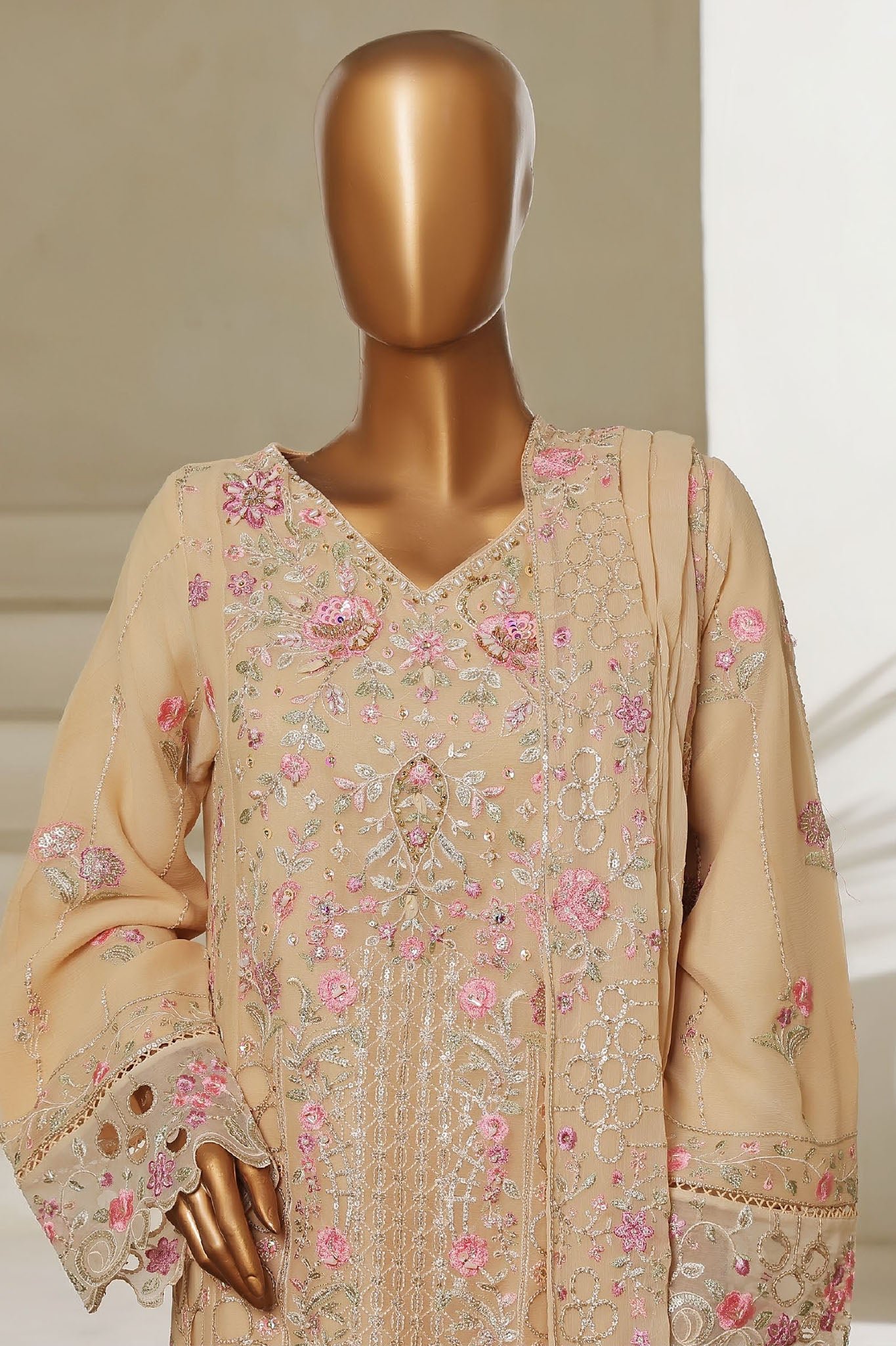 Bin Saeed Stitched 3 Piece Luxury Emb Chiffon Collection'2025-RTSC-2147-Fawn