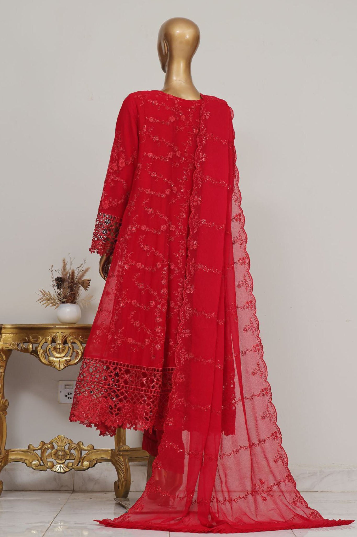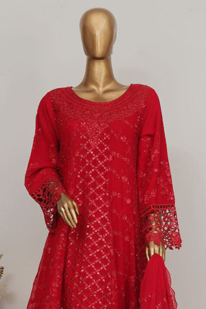 Bin Saeed Stitched 3 Piece Luxury Emb Chiffon Frock Vol-03 Collection-OMSC-1680-Red